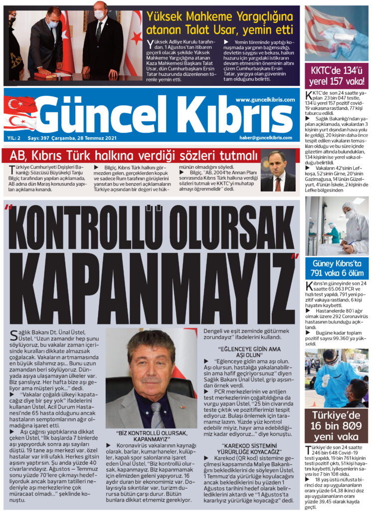 28 Temmuz 2021’de KKTC’de yayınlanan gazete manşetleri