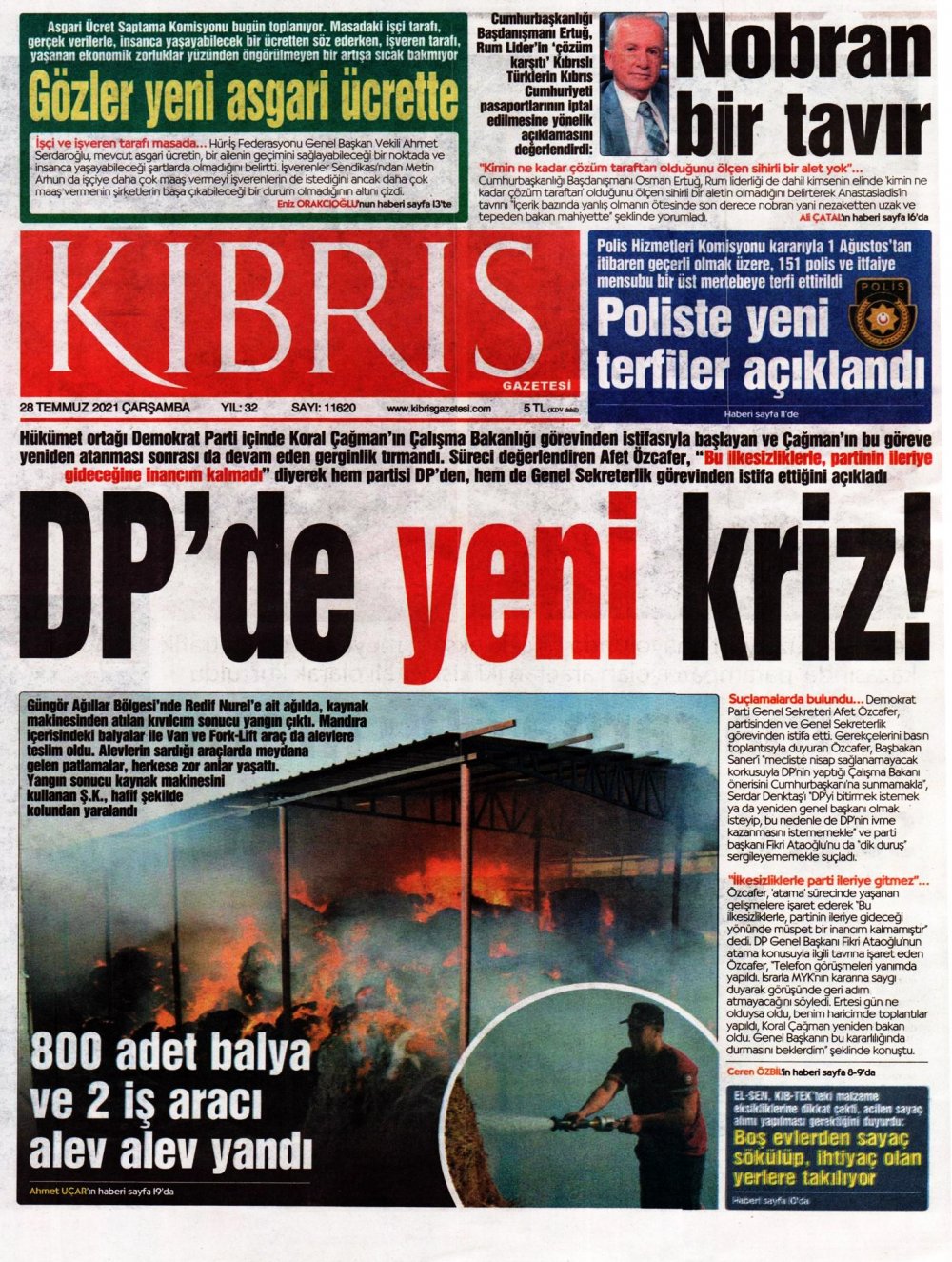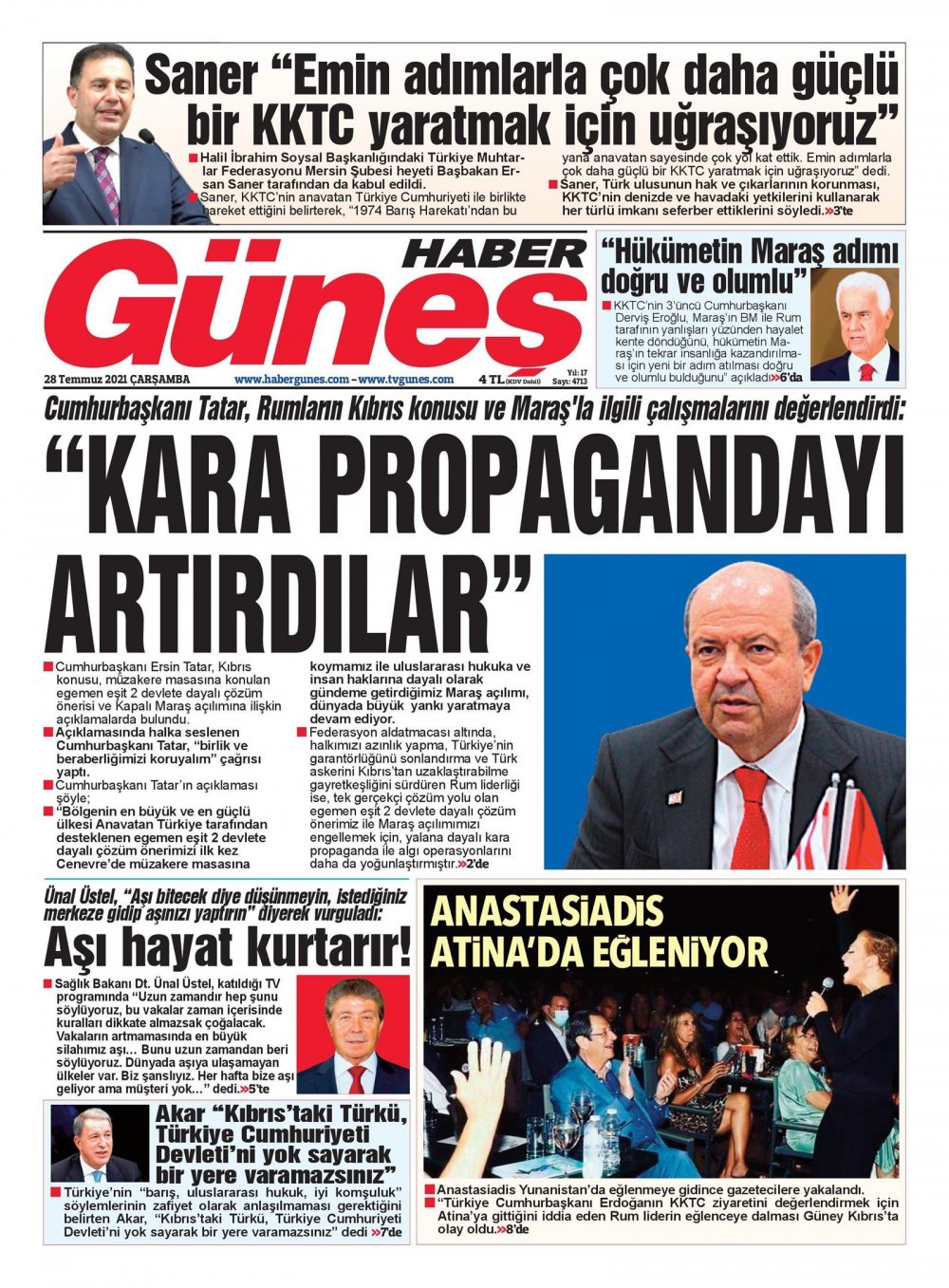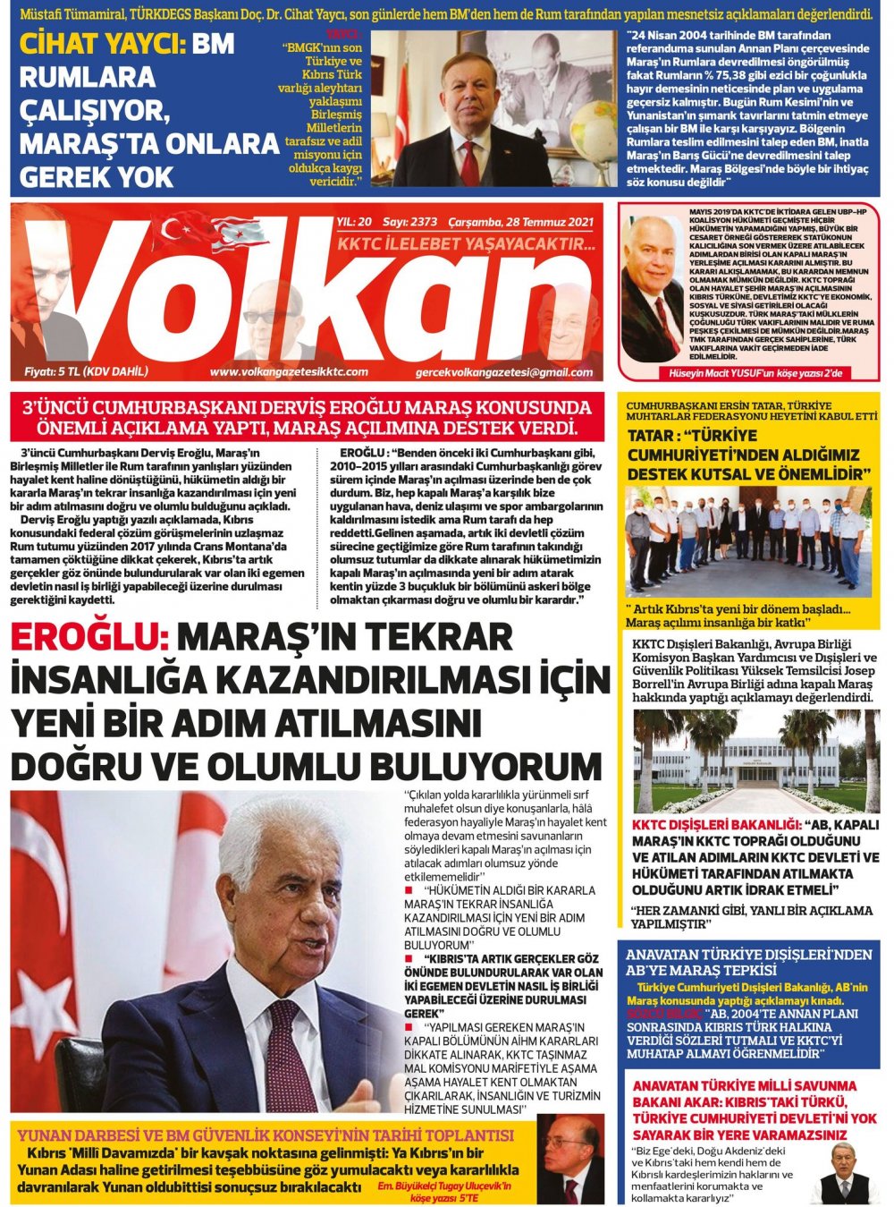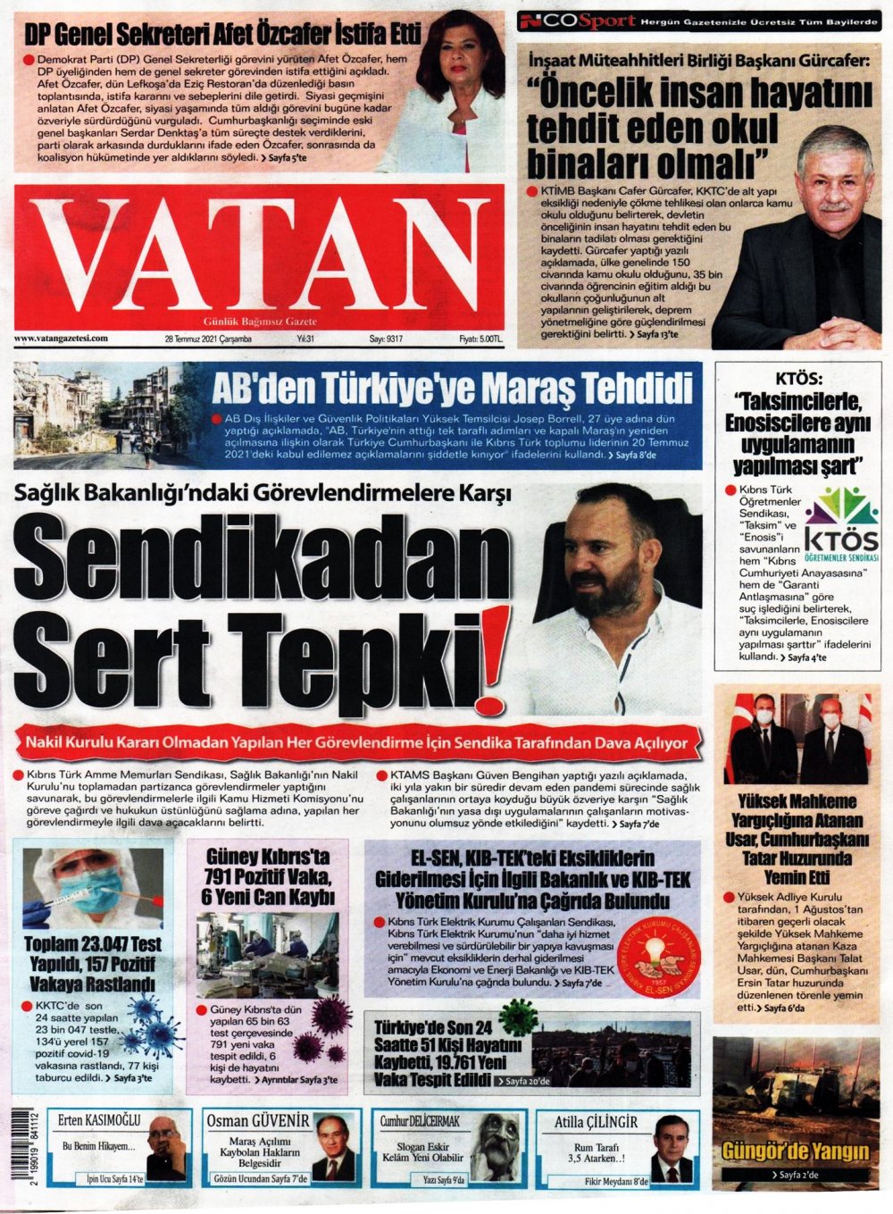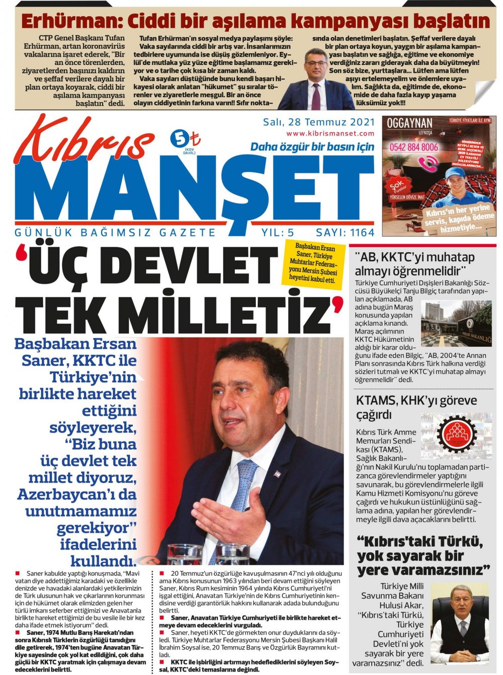 28 Temmuz 2021’de KKTC’de yayınlanan gazete manşetleri
