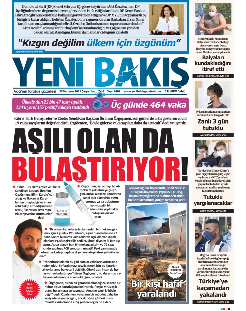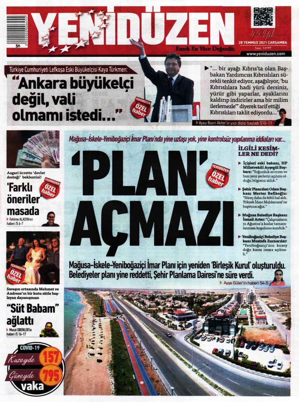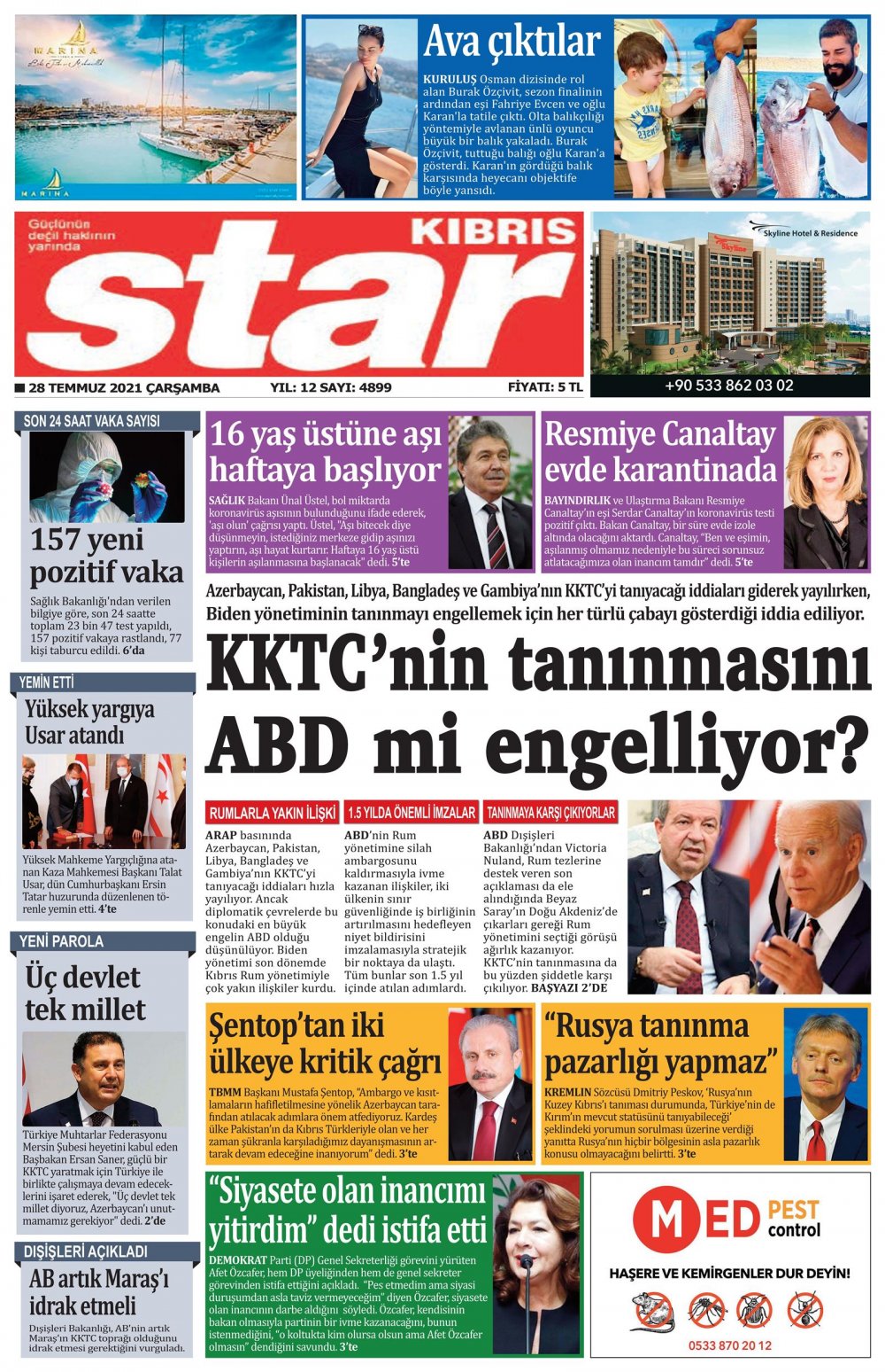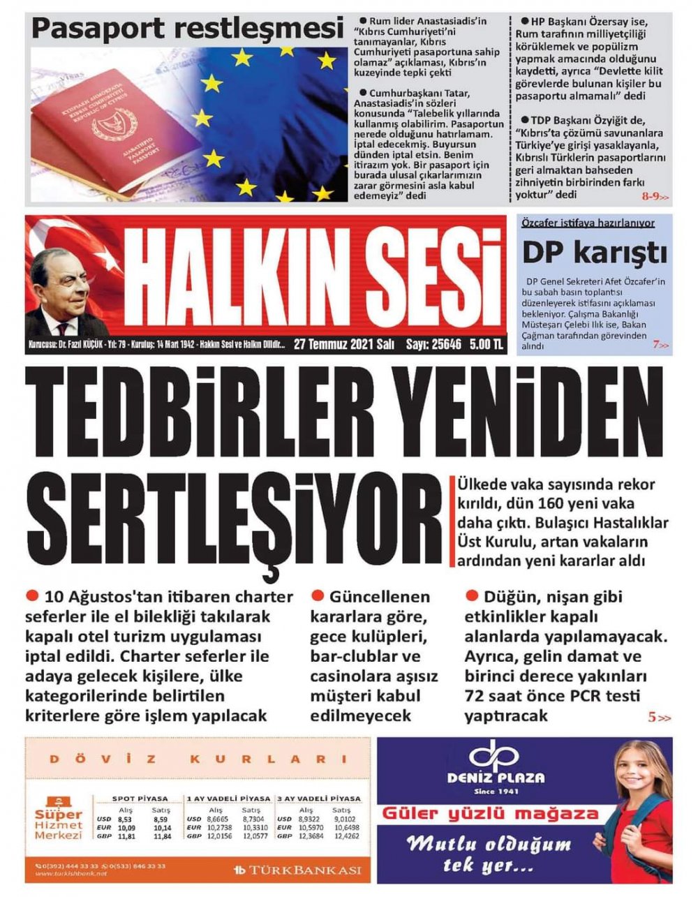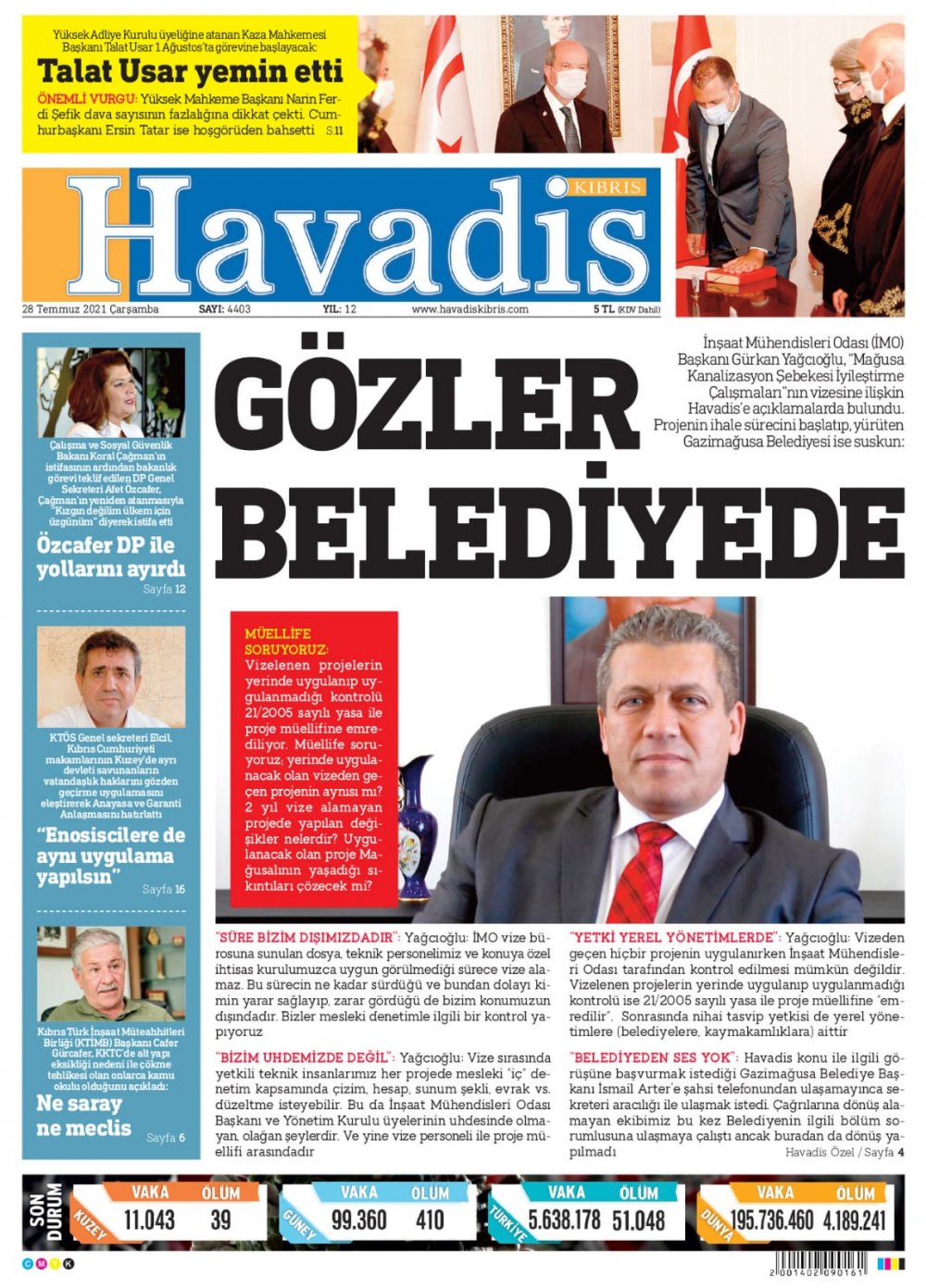 28 Temmuz 2021’de KKTC’de yayınlanan gazete manşetleri