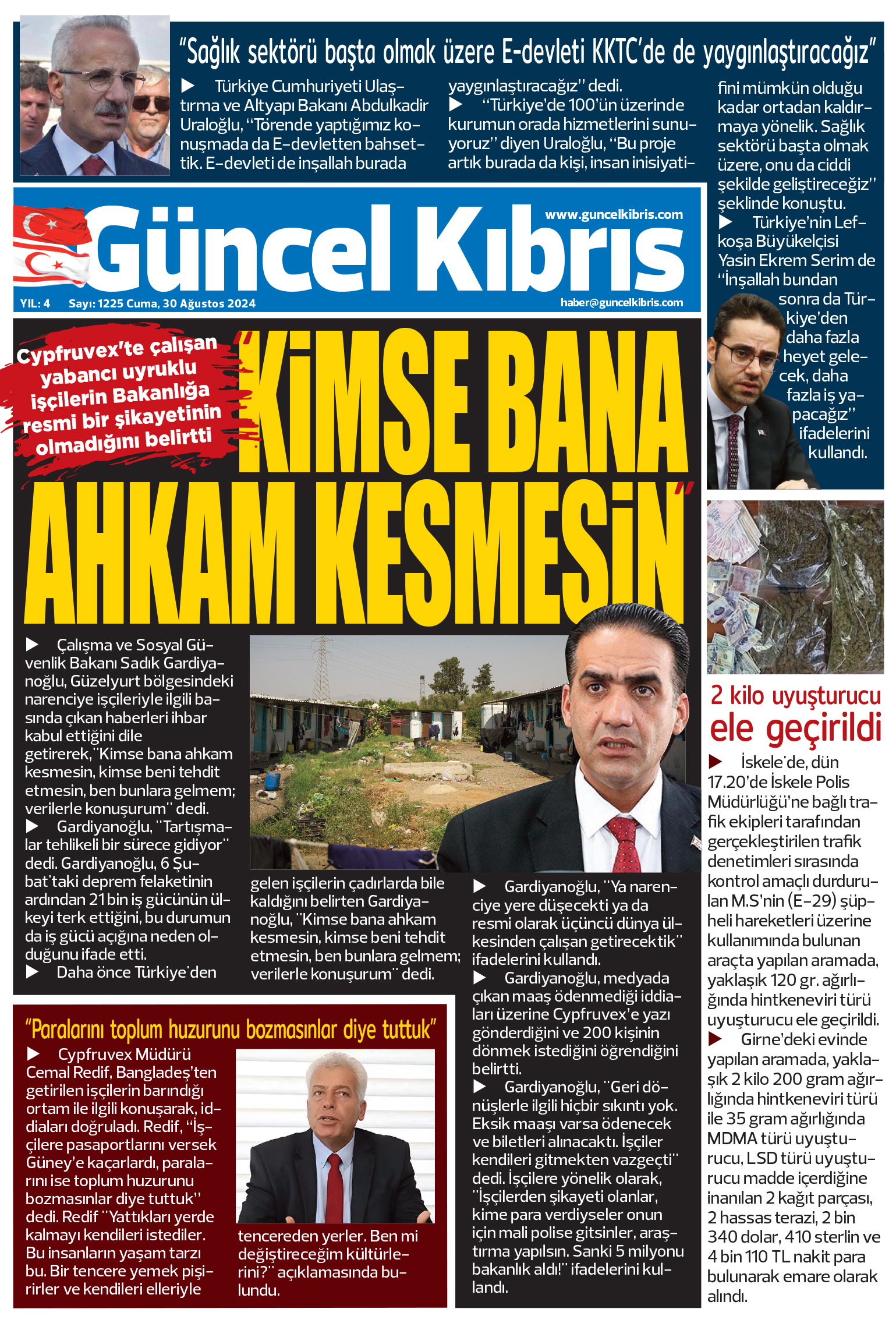 30 Ağustos 2024’te KKTC’de yayınlanan gazete manşetleri