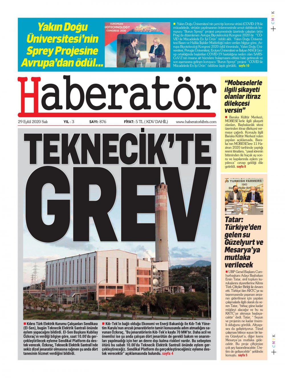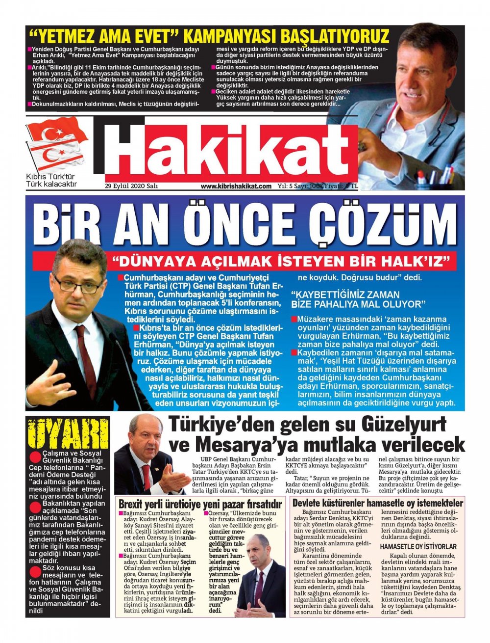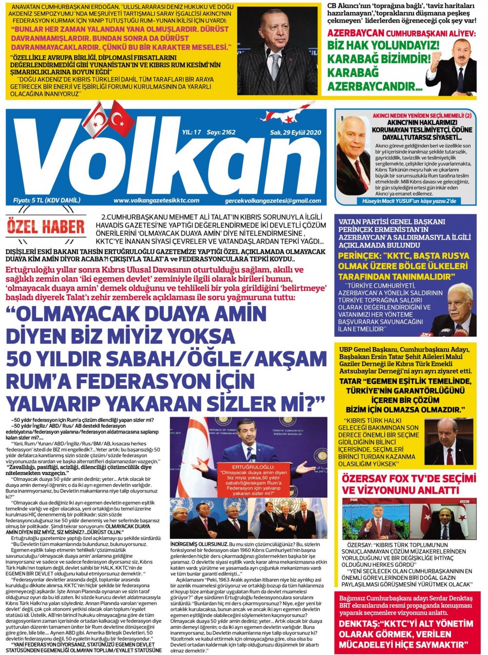 29 Eylül 2020 tarihinde KKTC’de yayınlanan gazete manşetleri