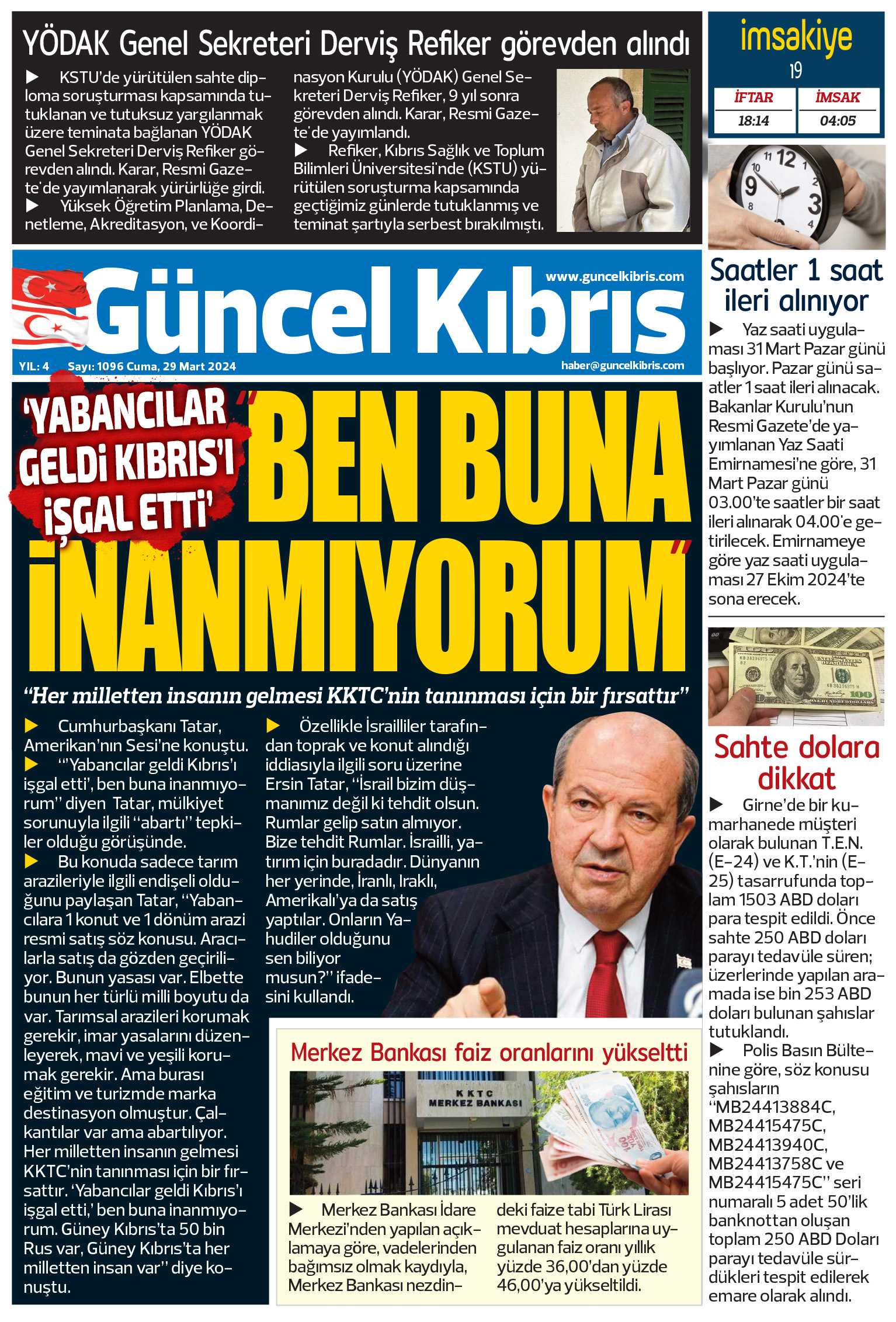 29 Mart 2024’te KKTC’de yayınlanan gazete manşetleri