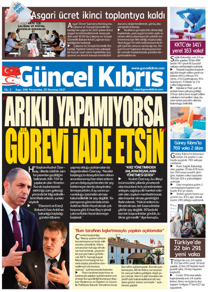 29 Temmuz 2021’de KKTC’de yayınlanan gazete manşetleri