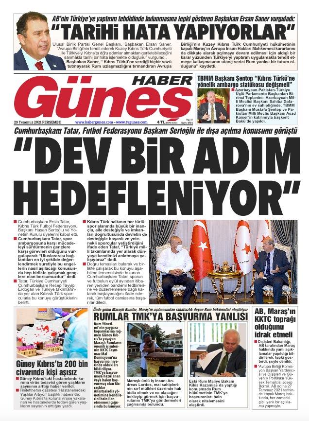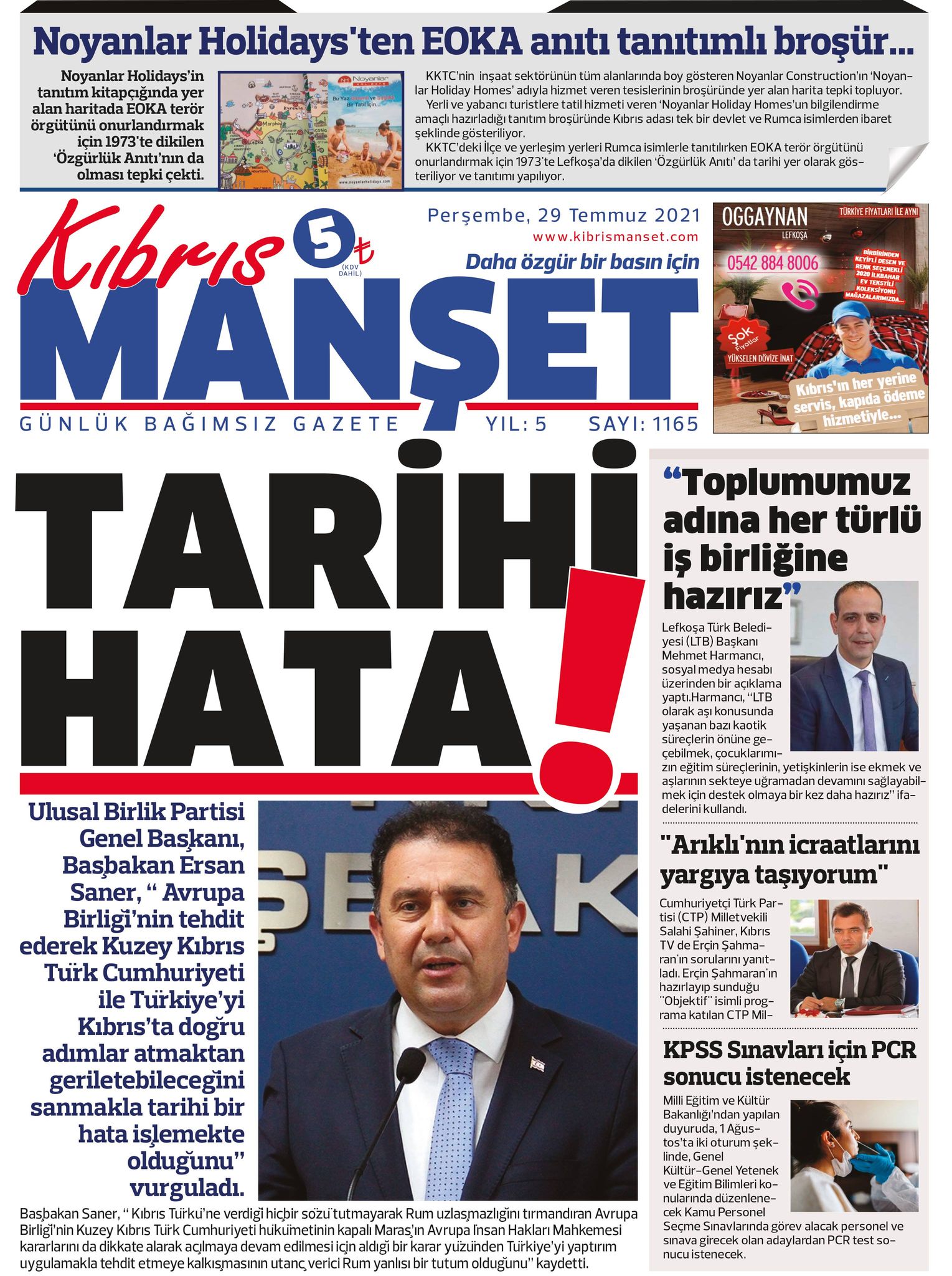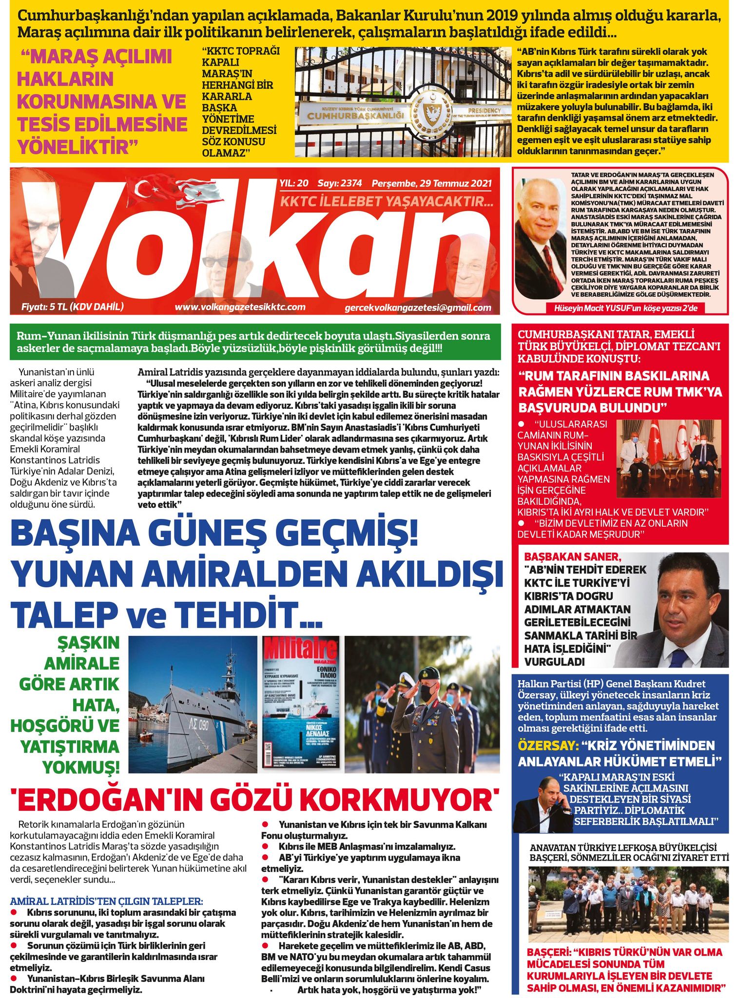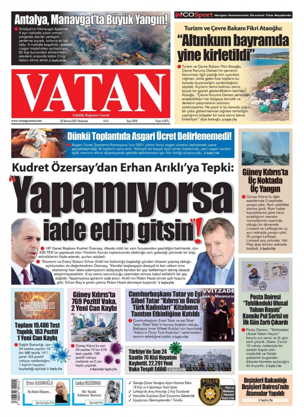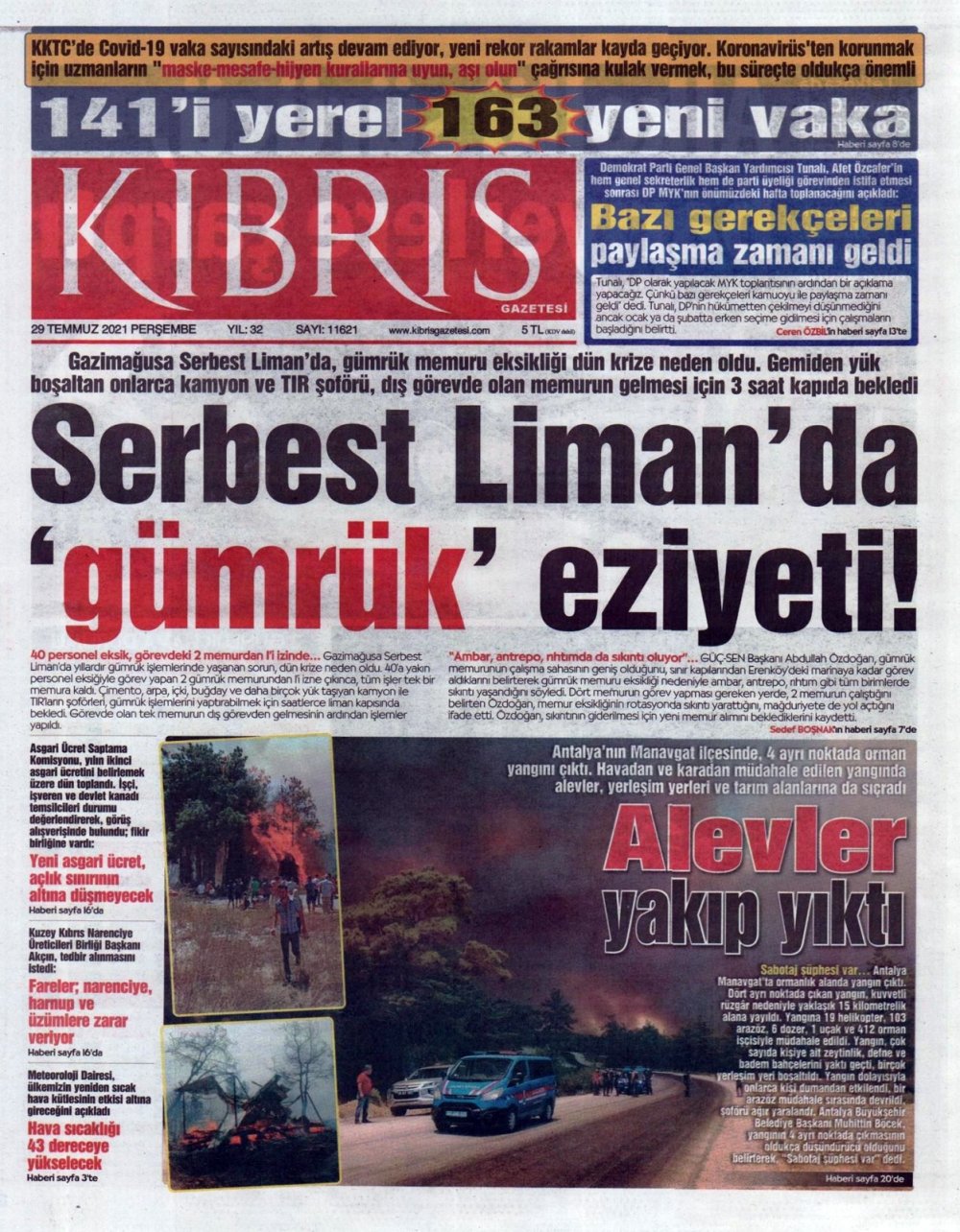 29 Temmuz 2021’de KKTC’de yayınlanan gazete manşetleri