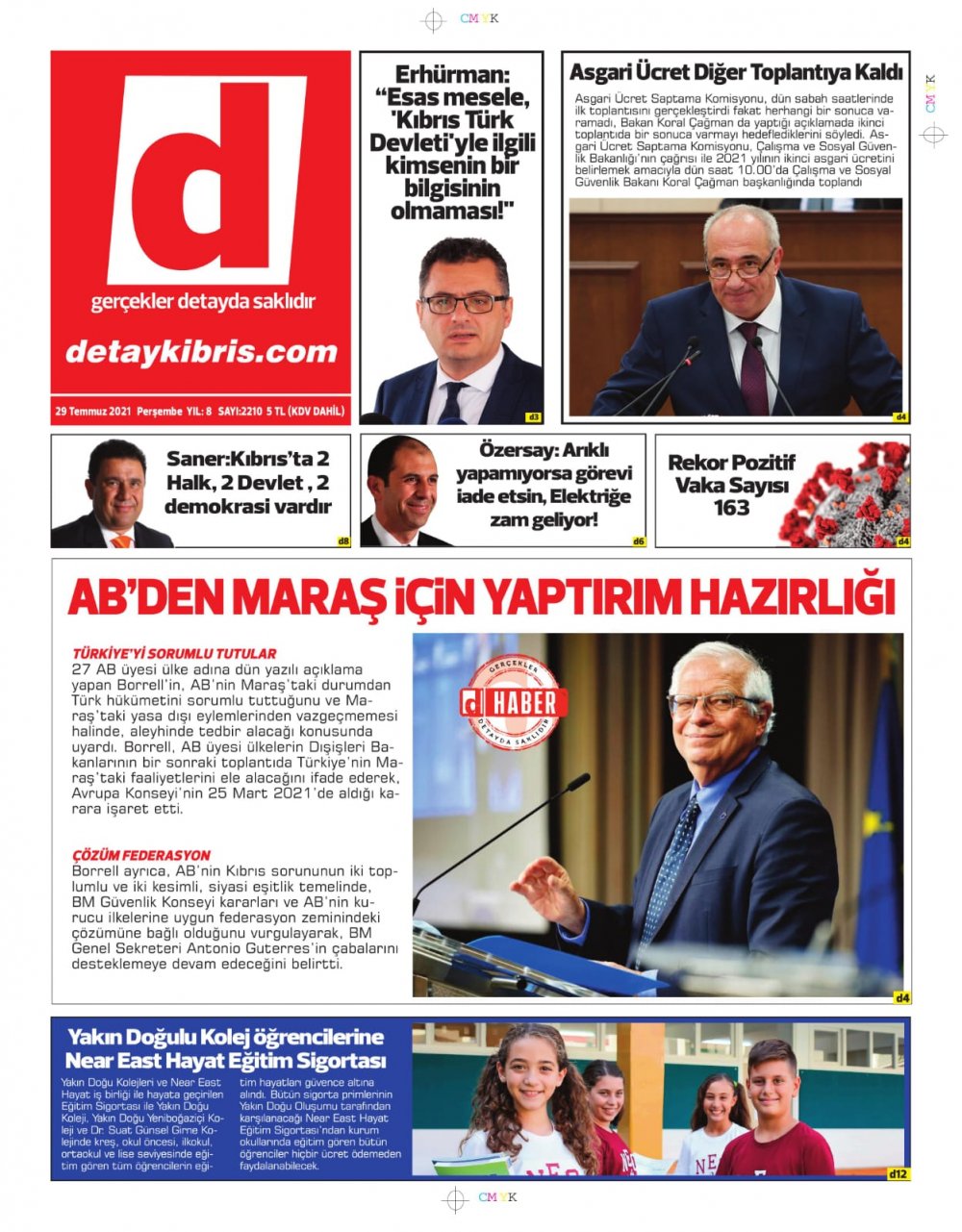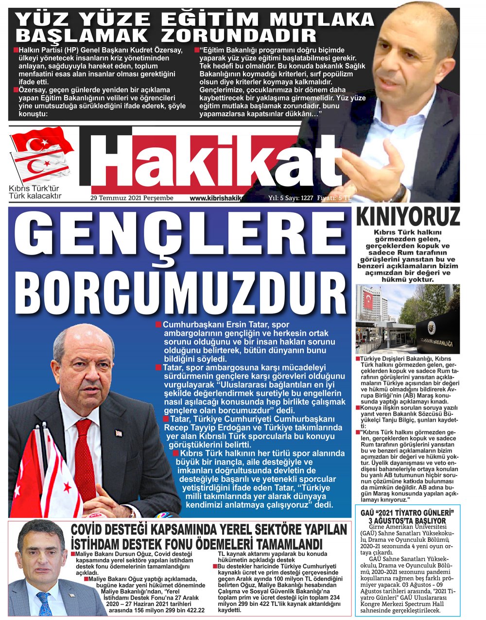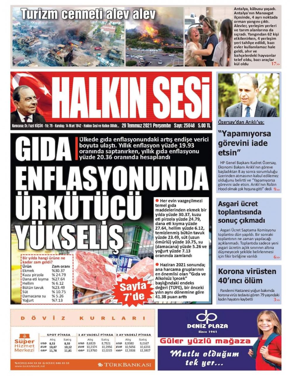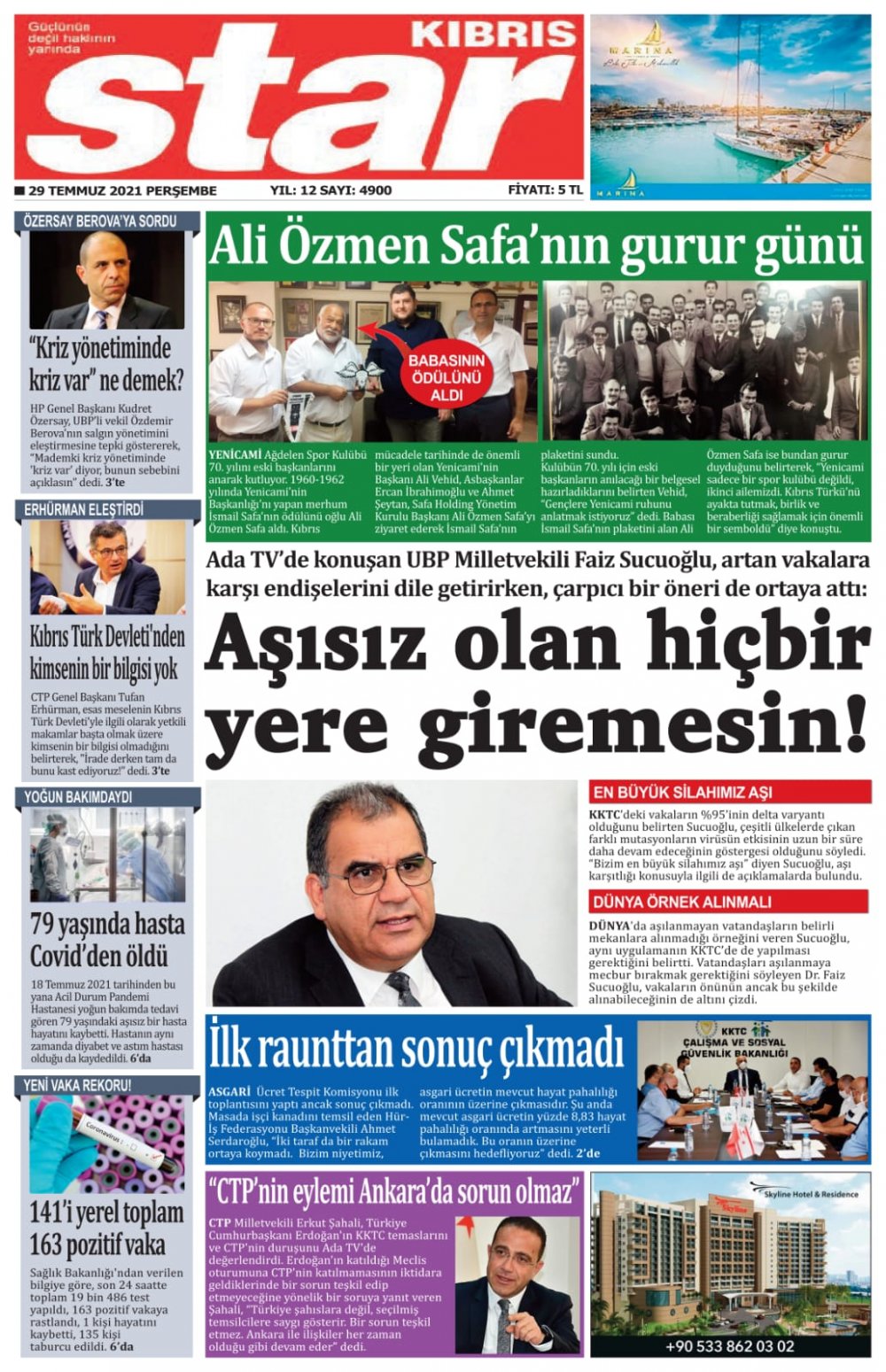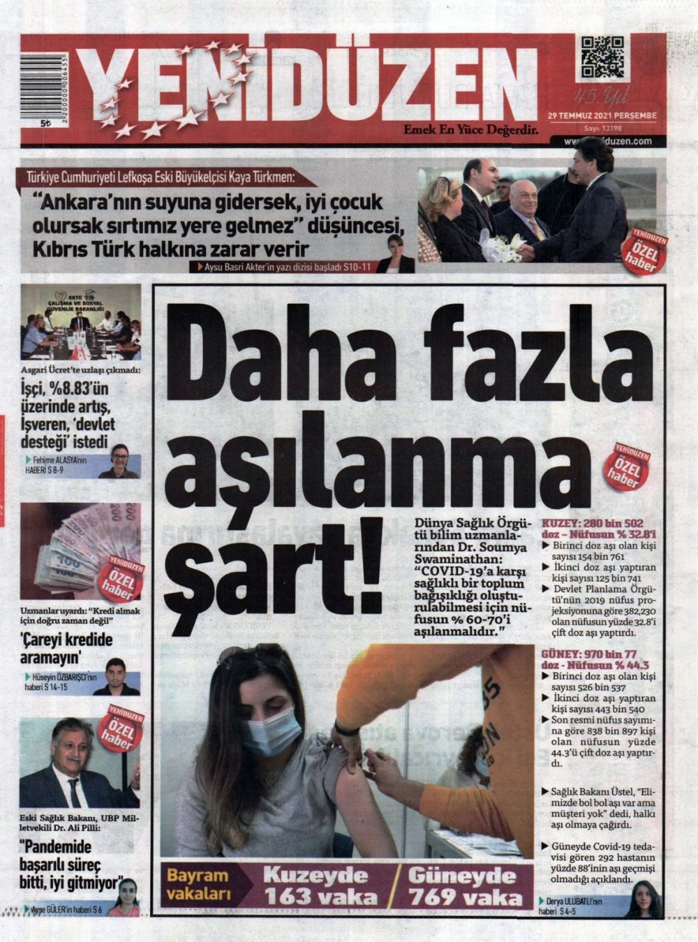 29 Temmuz 2021’de KKTC’de yayınlanan gazete manşetleri