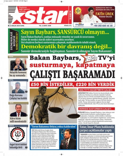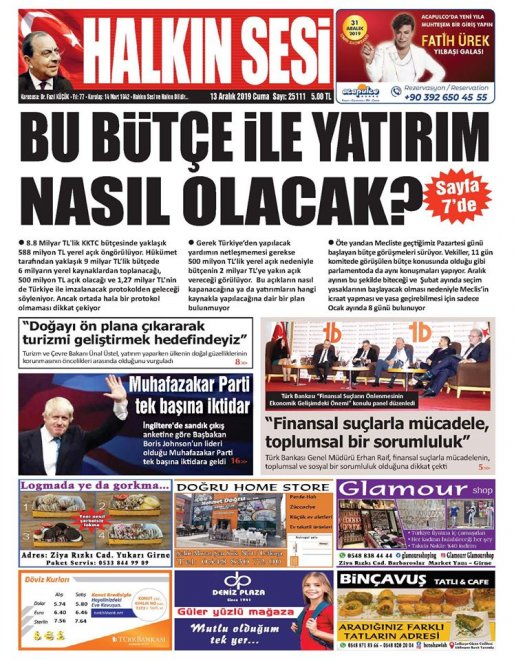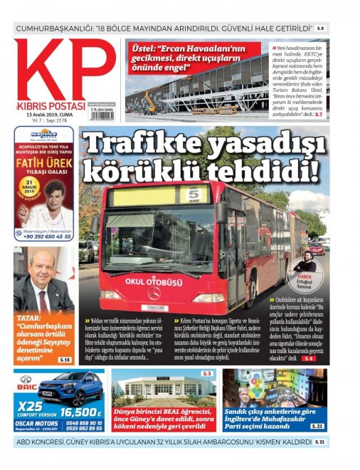 13 ARALIK KKTC GAZETE MANŞETLERİ