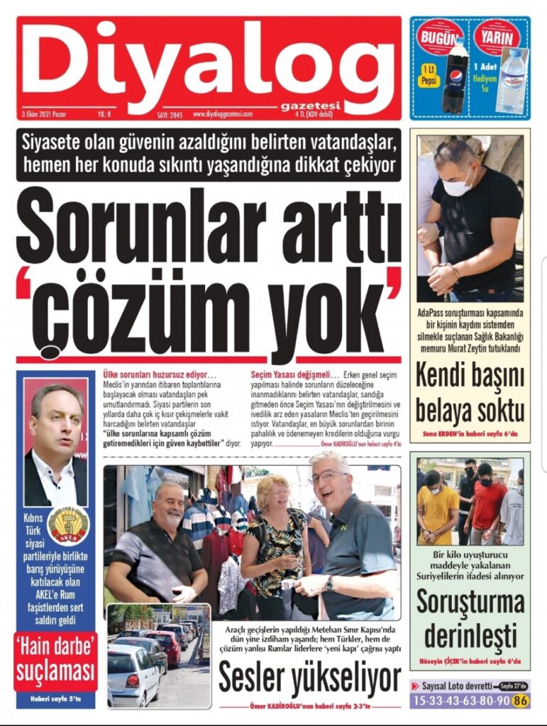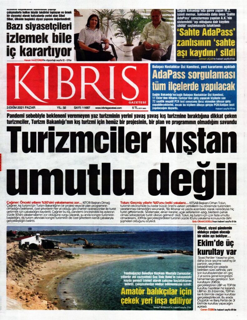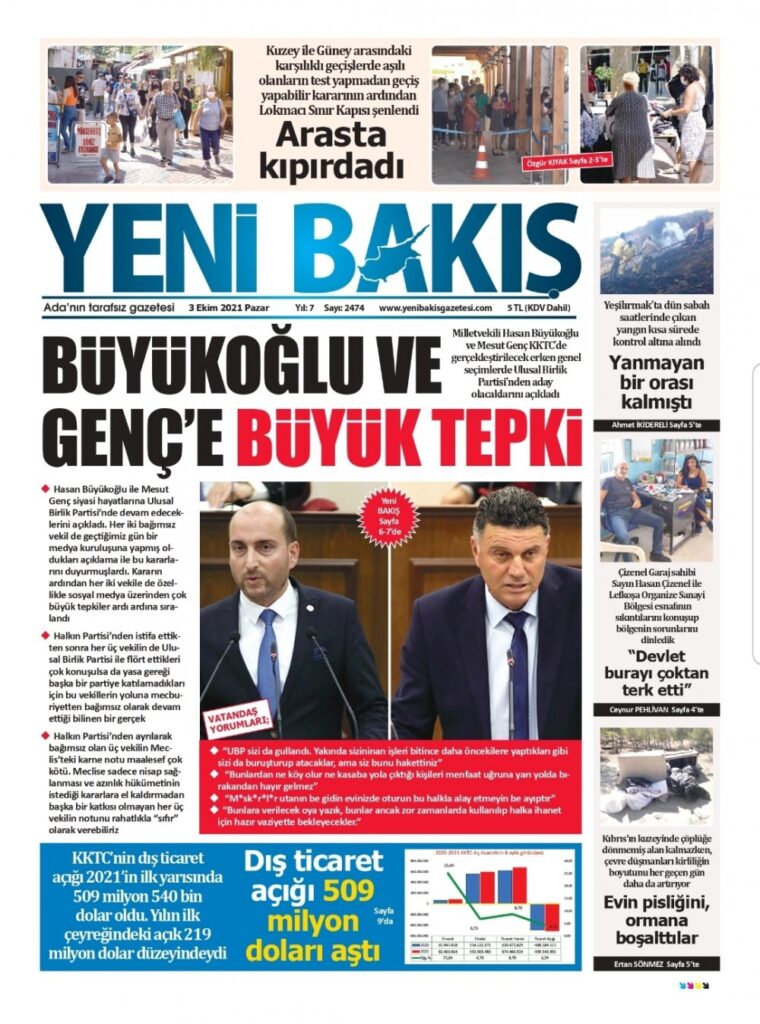 3 Ekim 2021’de KKTC’de yayınlanan gazete manşetleri