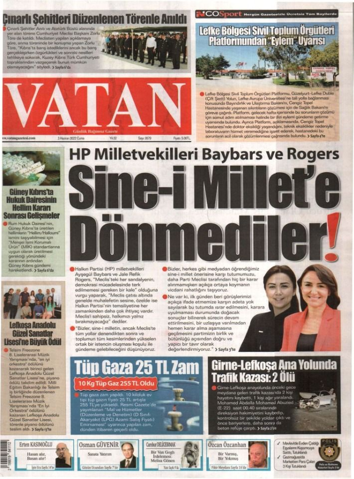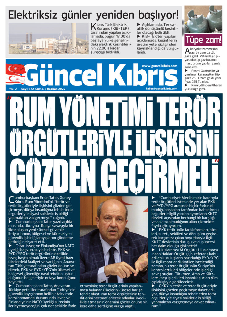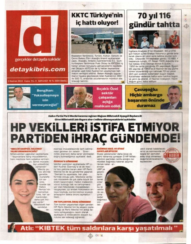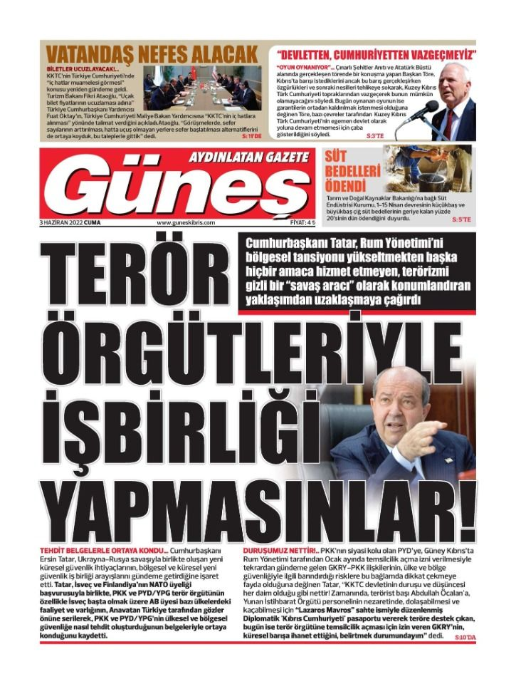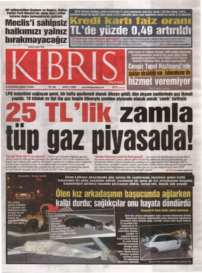 3 Haziran 2022’de KKTC’de yayınlanan gazete manşetleri