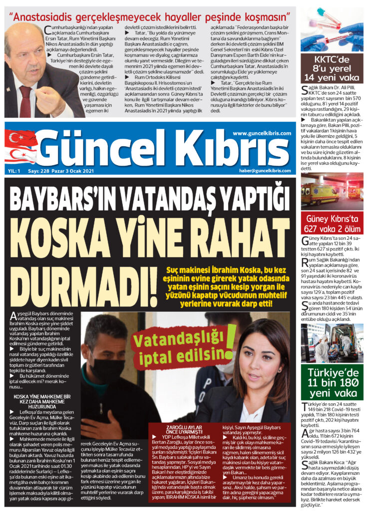 3 Ocak 2021 tarihinde KKTC’de yayınlanan gazete manşetleri
