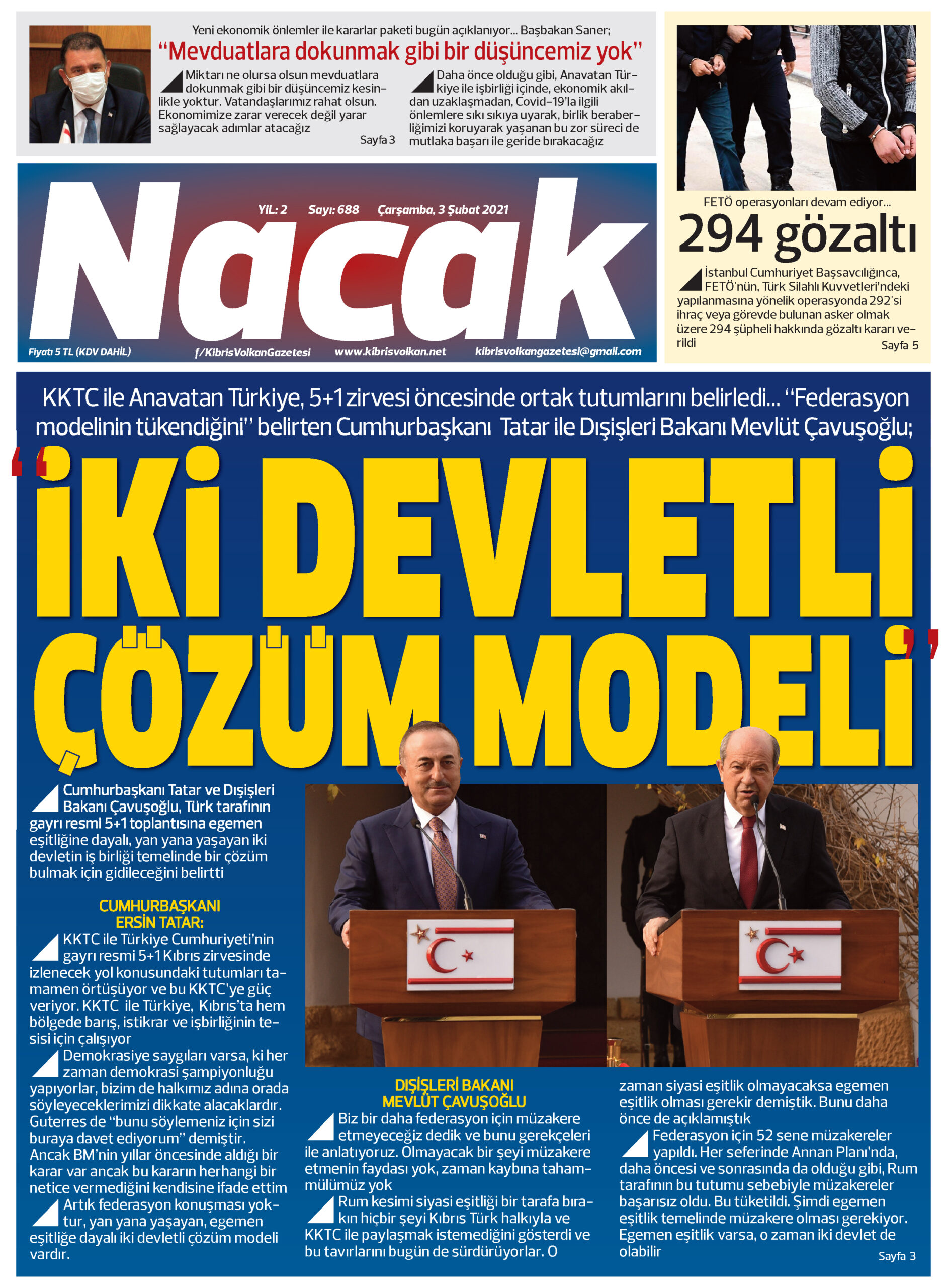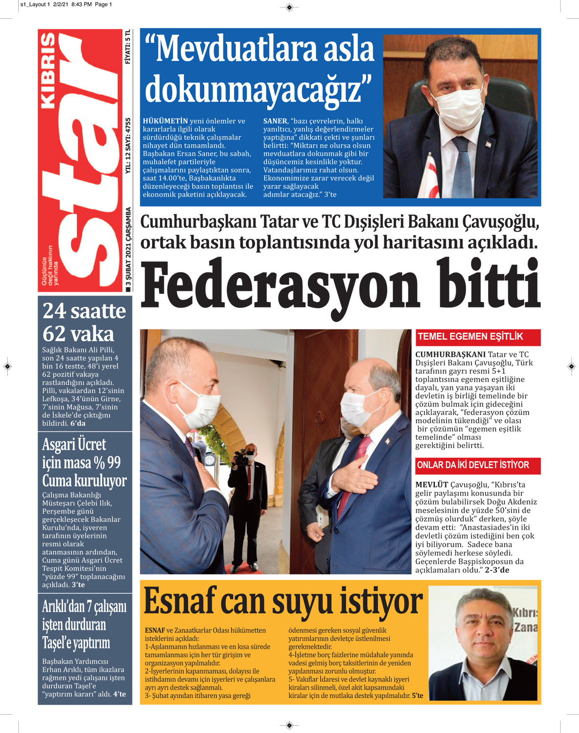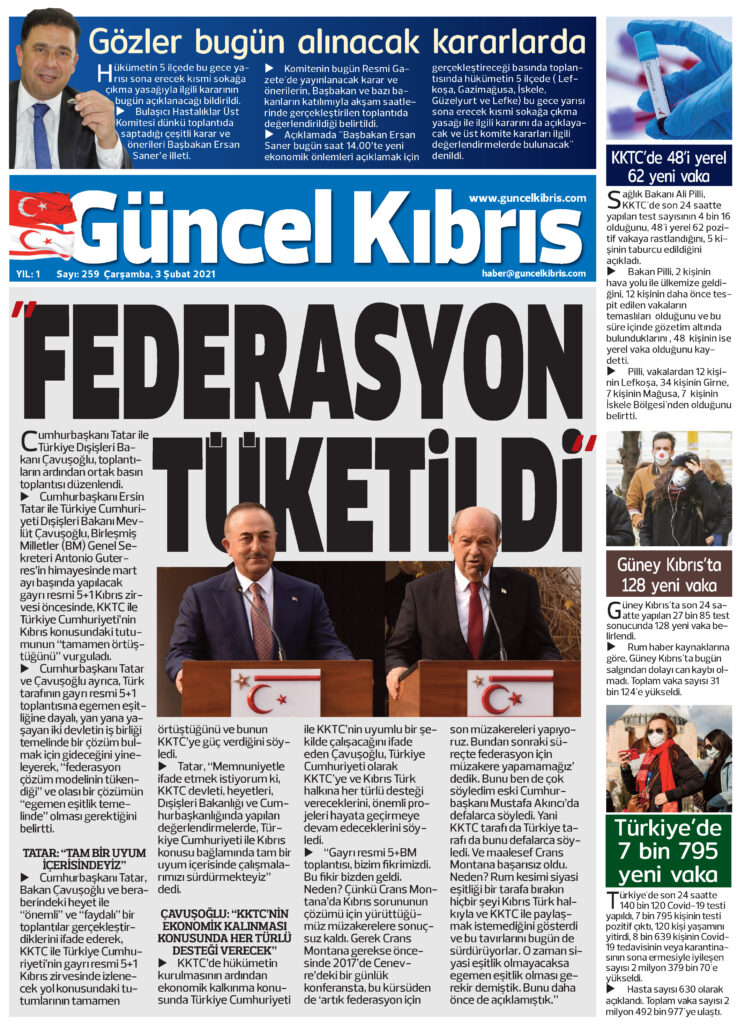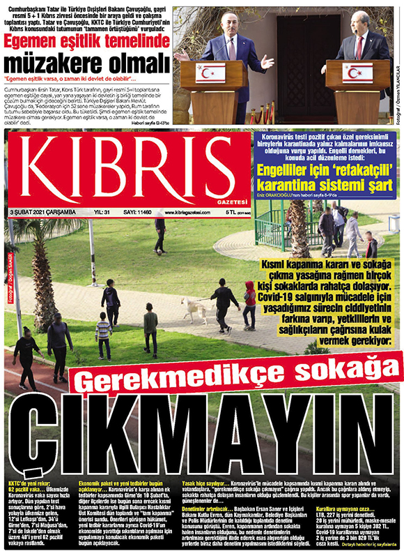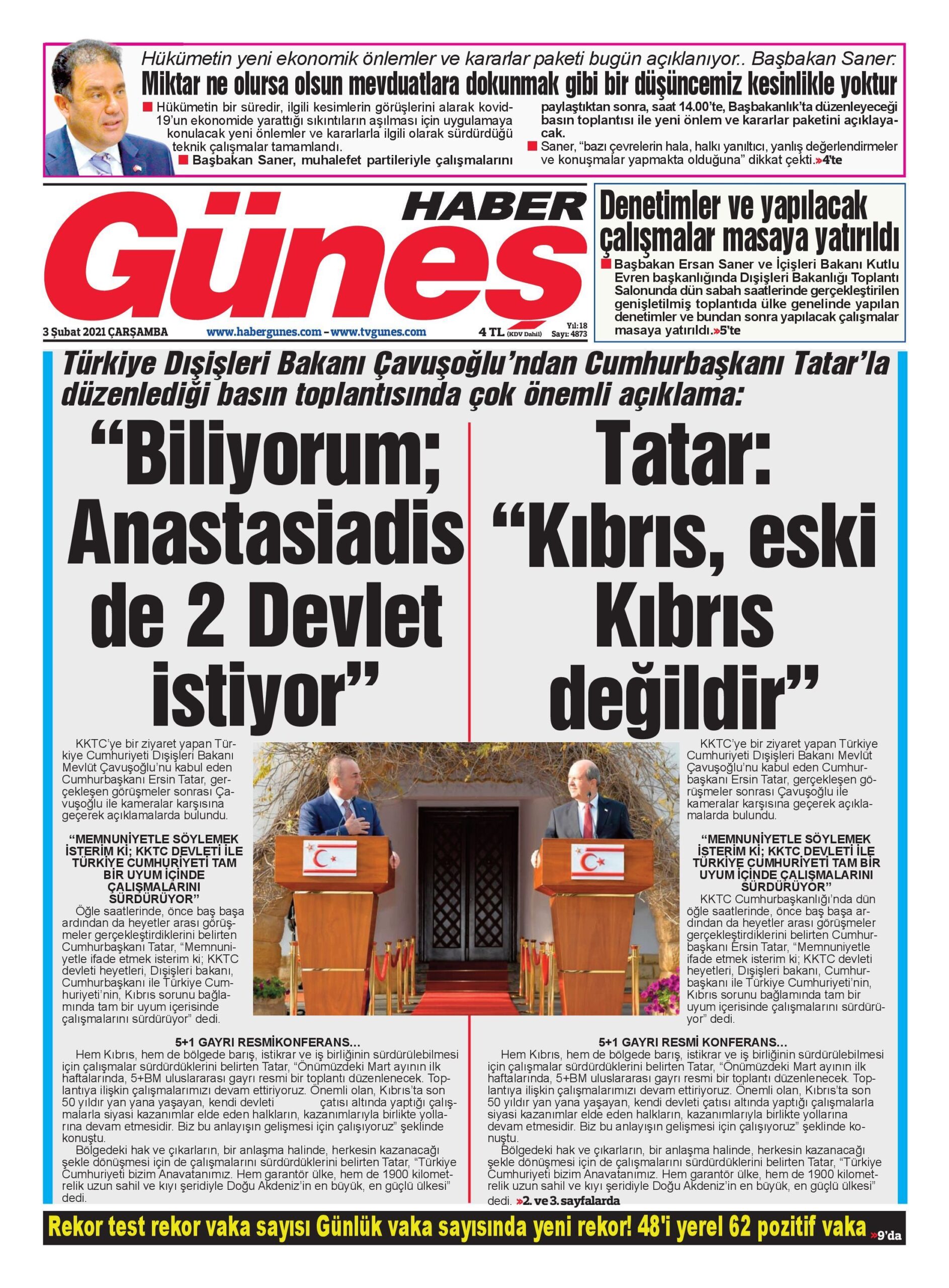 3 Şubat 2021 tarihinde KKTC’de yayınlanan gazete manşetleri