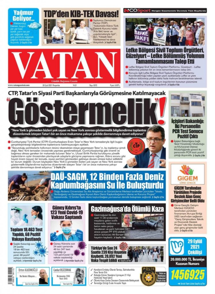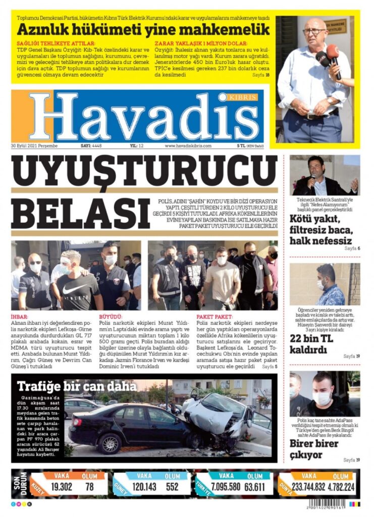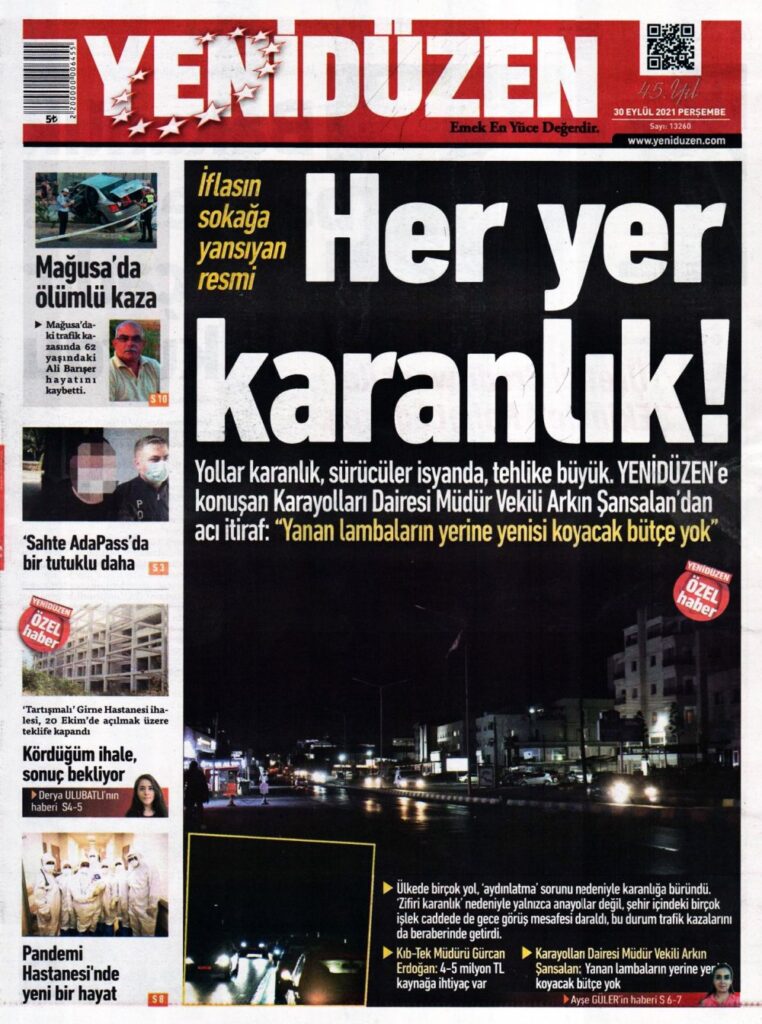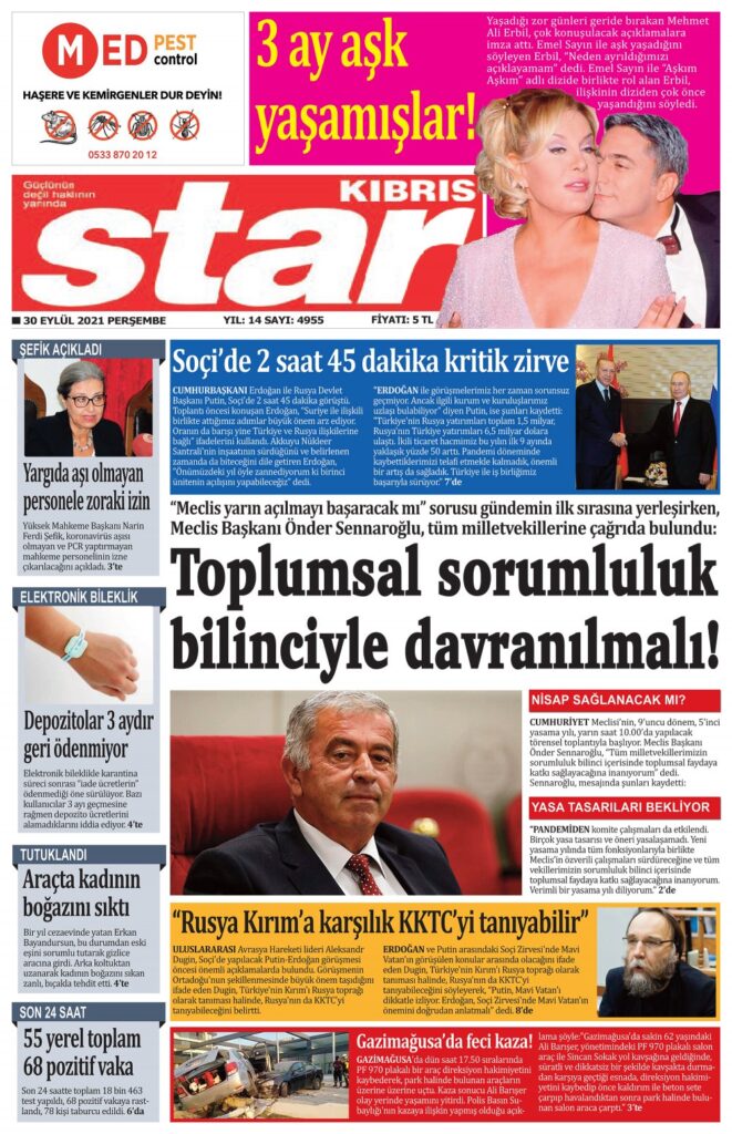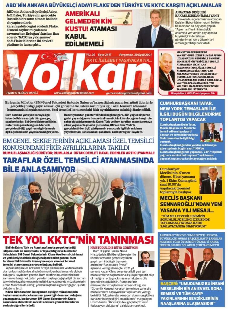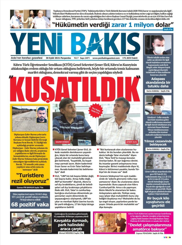30 Eylül 2021’de KKTC’de yayınlanan gazete manşetleri