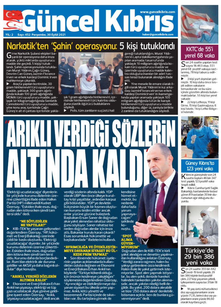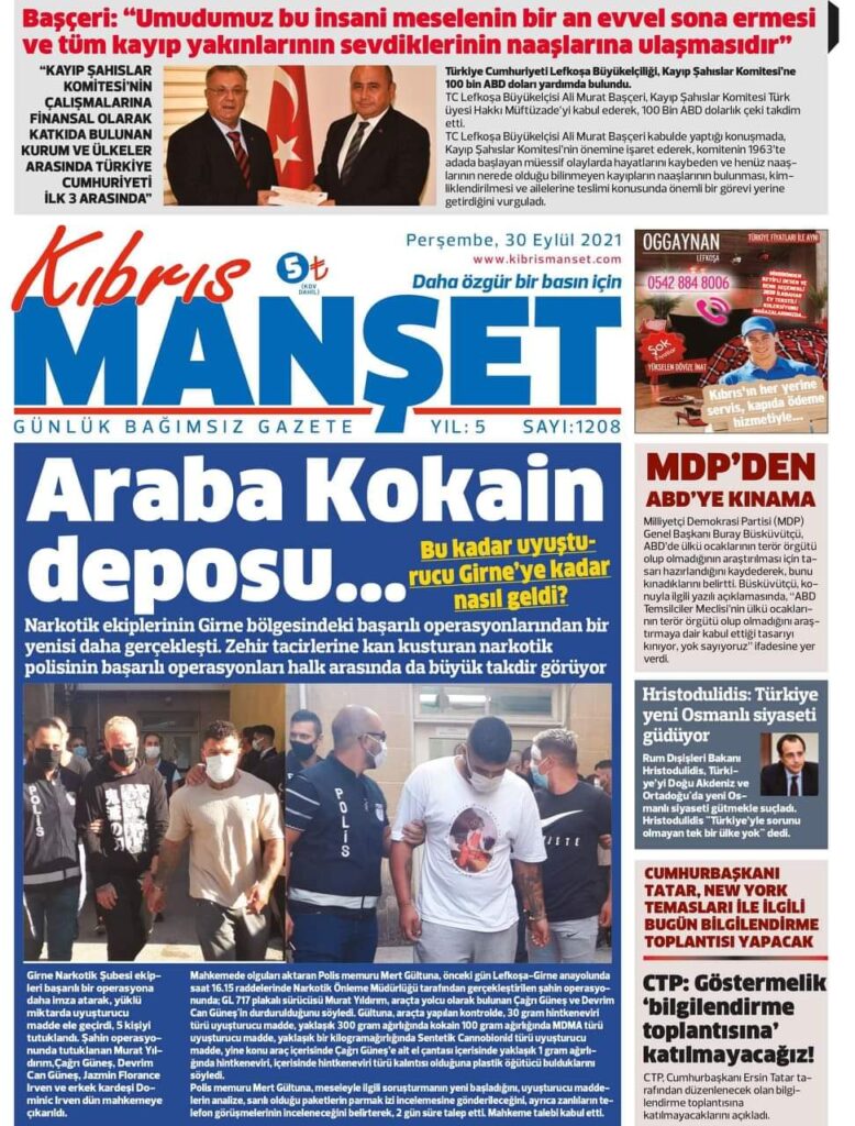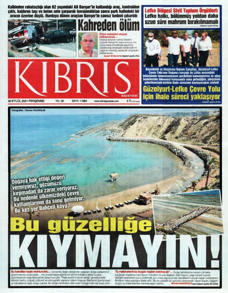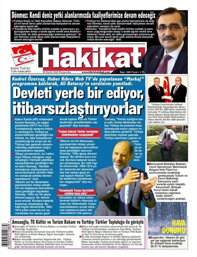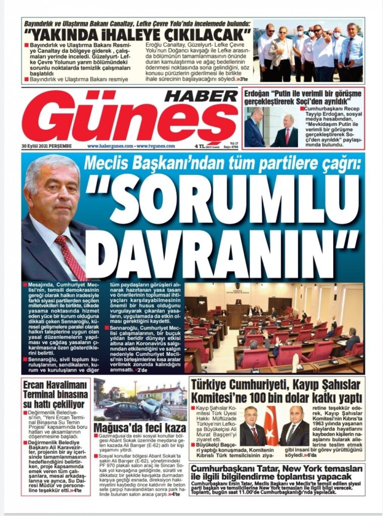 30 Eylül 2021’de KKTC’de yayınlanan gazete manşetleri