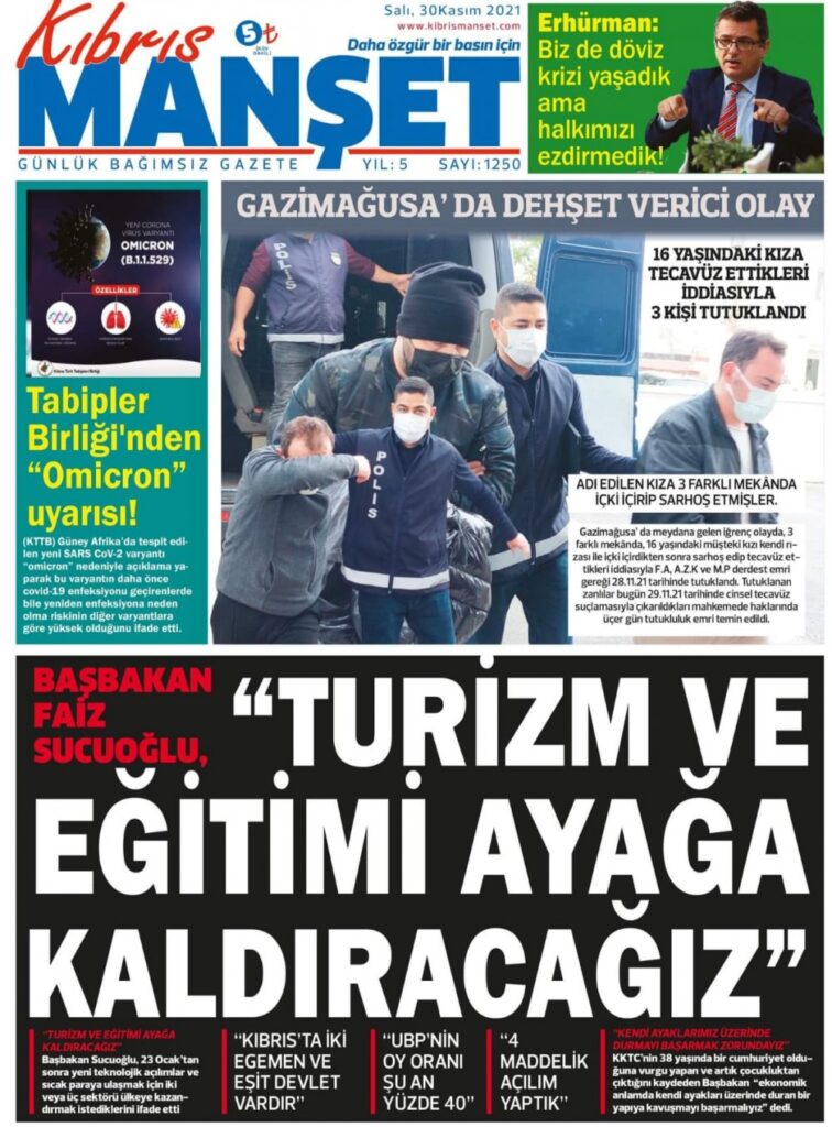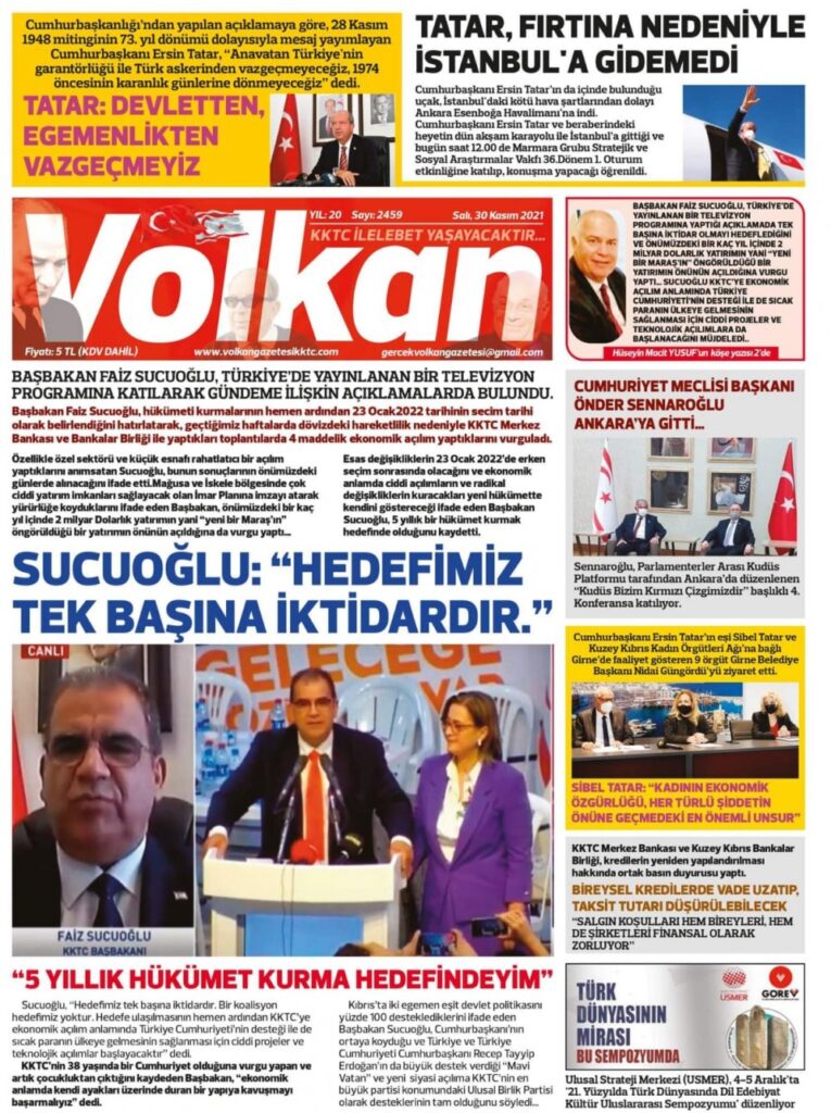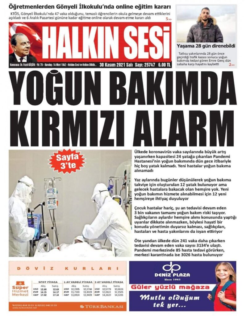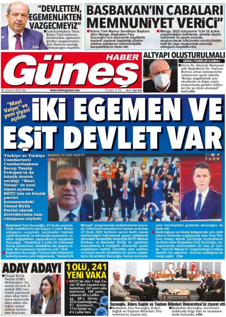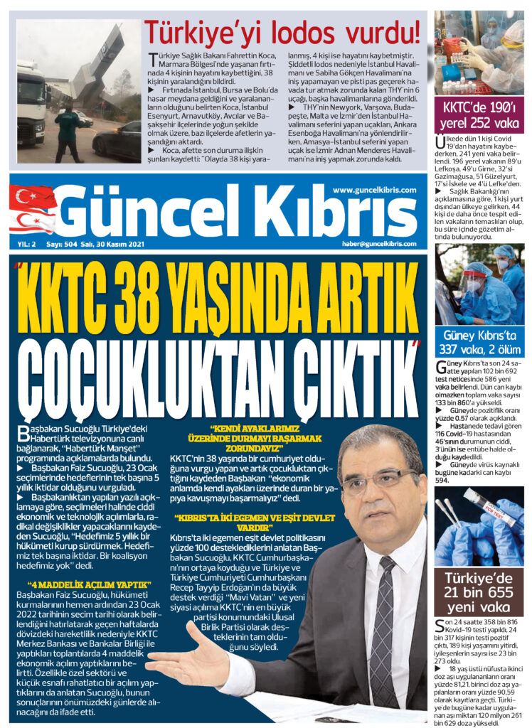 30 Kasım 2021’de KKTC’de yayınlanan gazete manşetleri