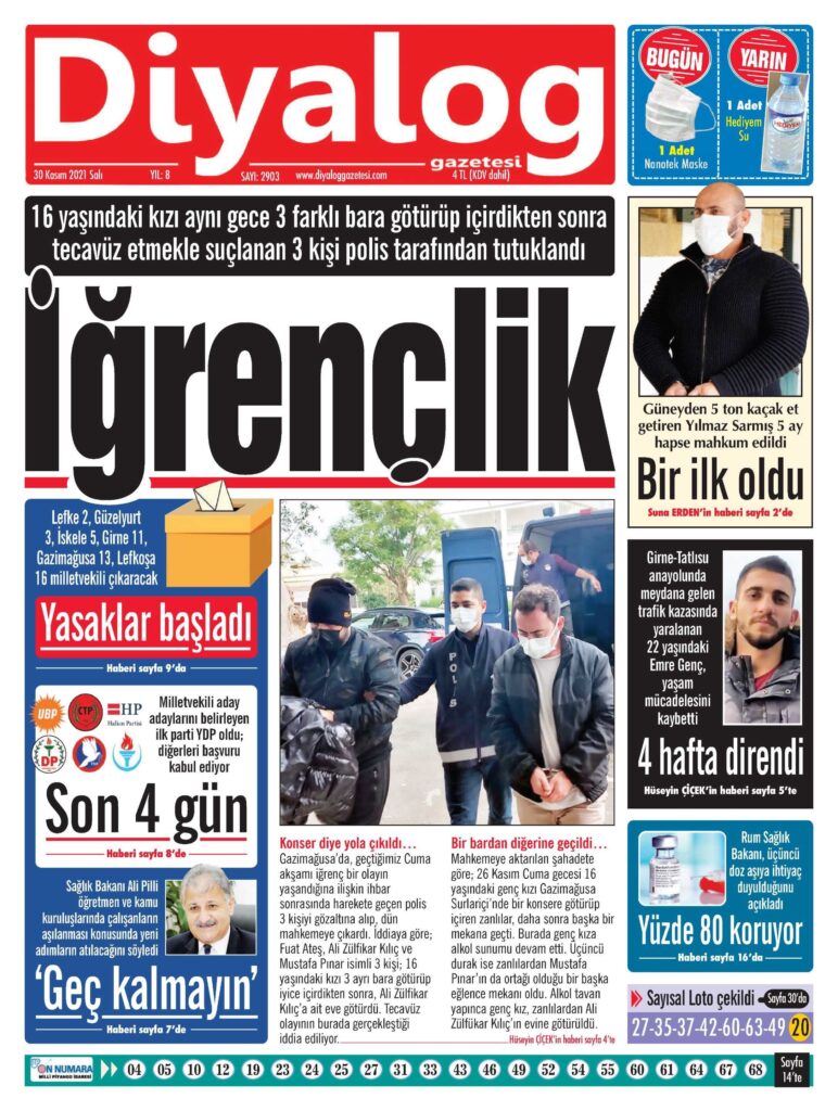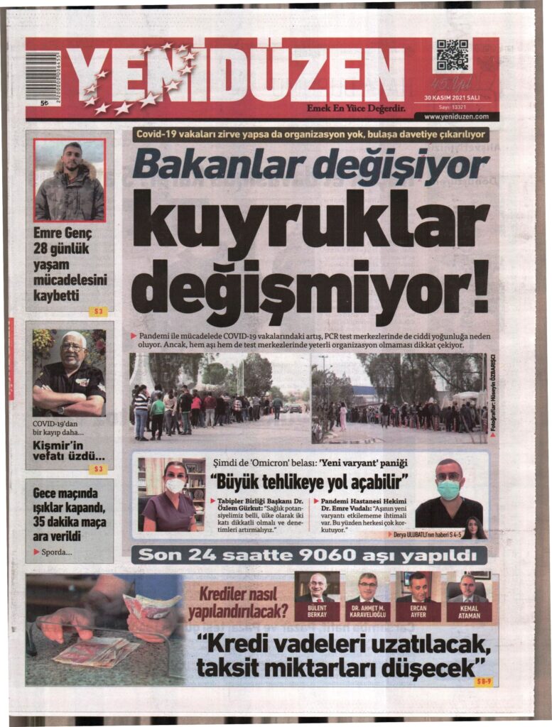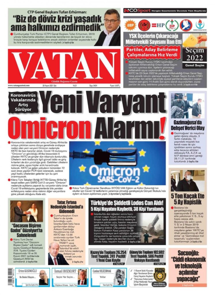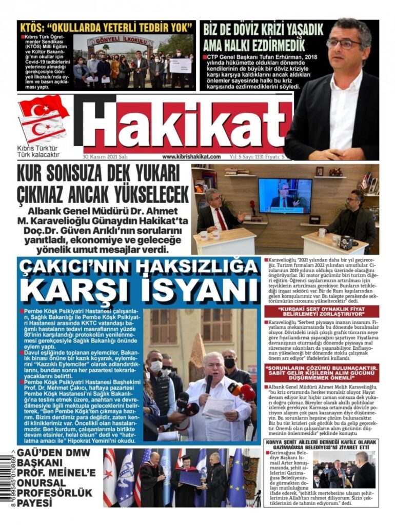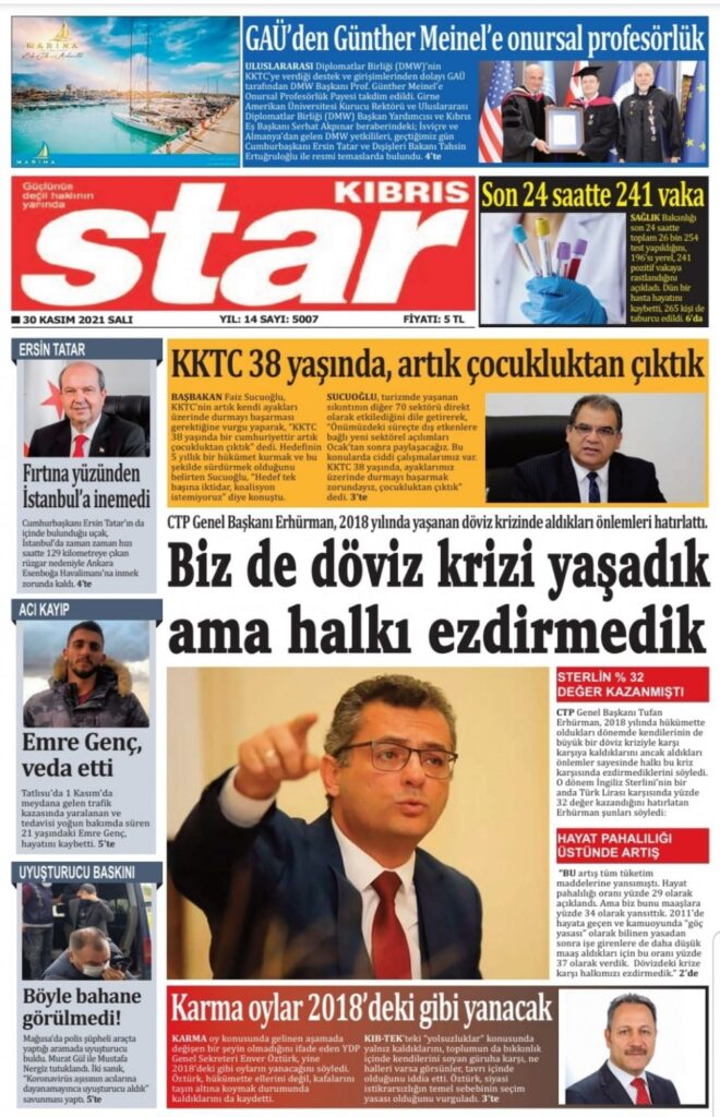 30 Kasım 2021’de KKTC’de yayınlanan gazete manşetleri