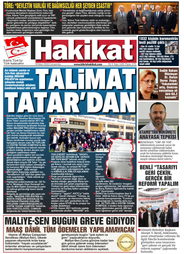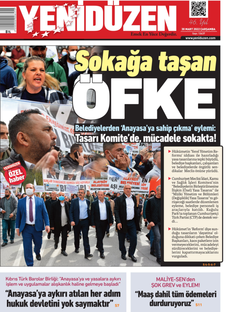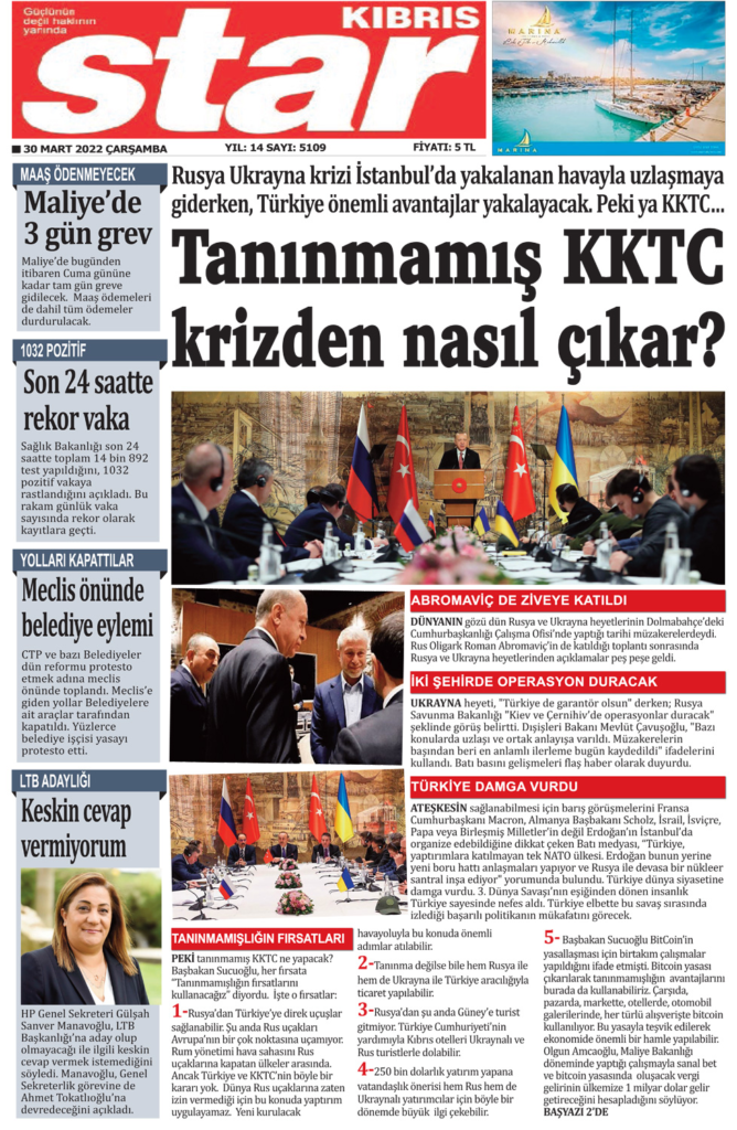 30 Mart 2022’de KKTC’de yayınlanan gazete manşetleri