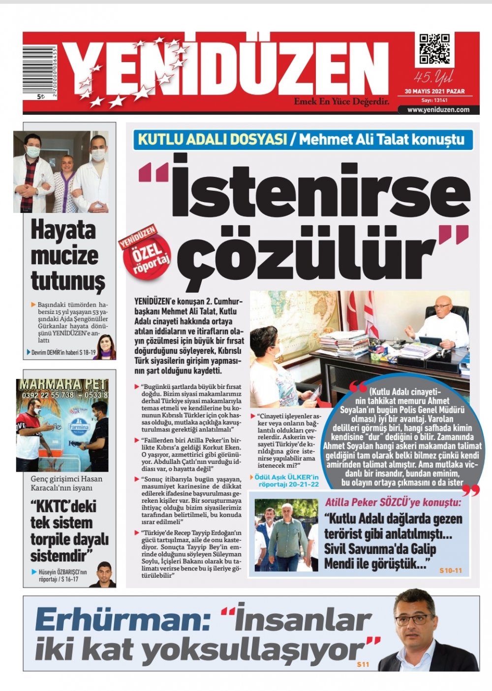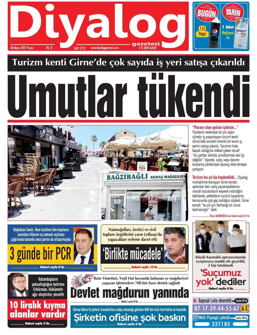 30 Mayıs 2021’de KKTC’de yayınlanan gazete manşetleri