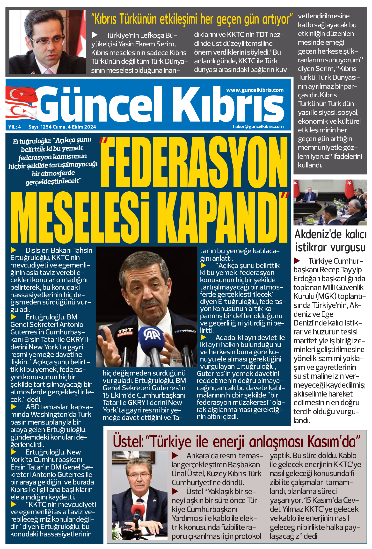 4 Ekim 2024’te Güncel Kıbrıs ve KKTC’de yayınlanan gazete manşetleri
