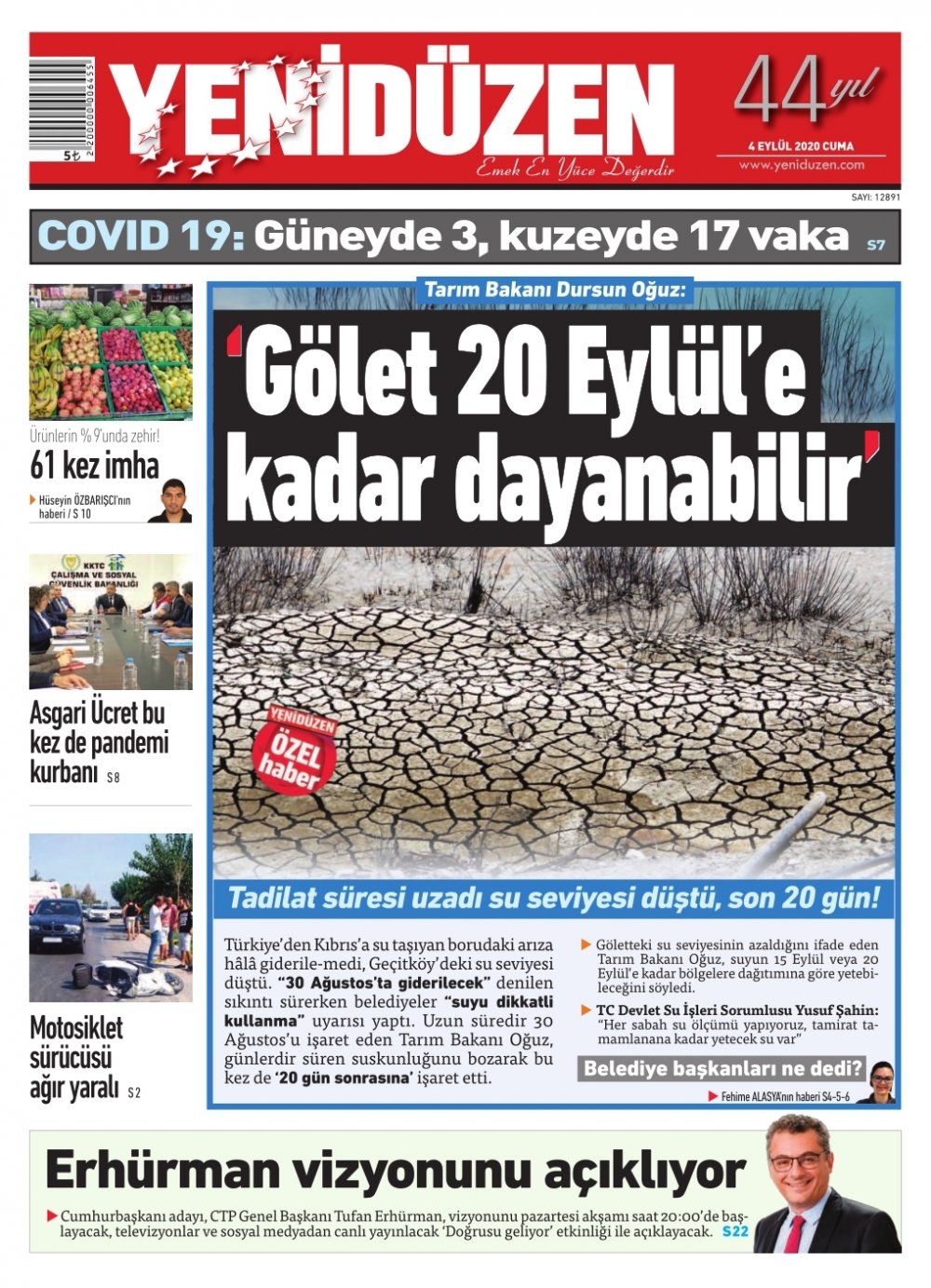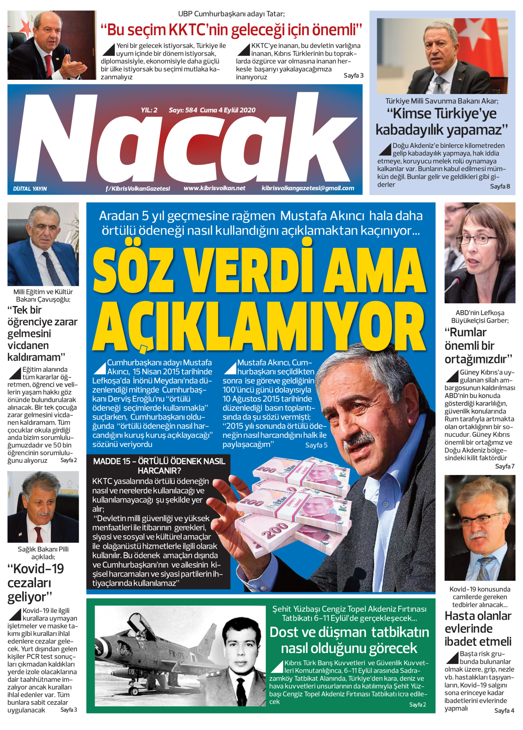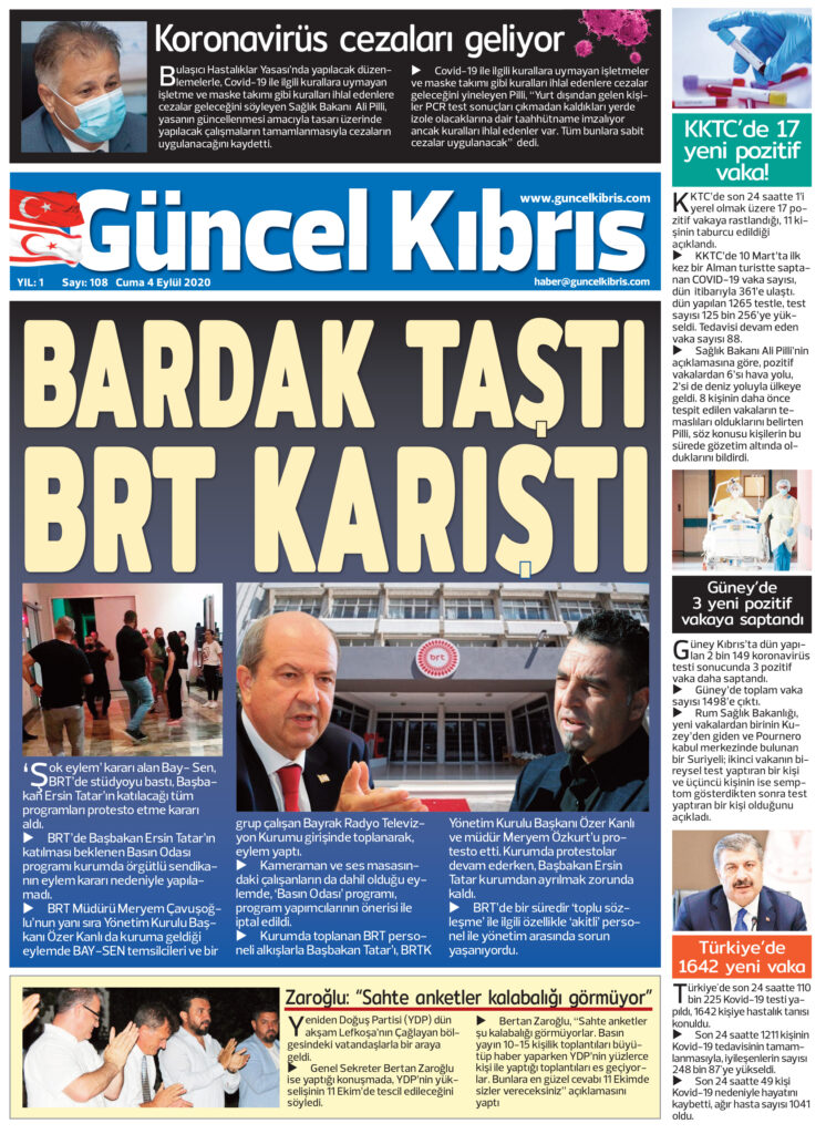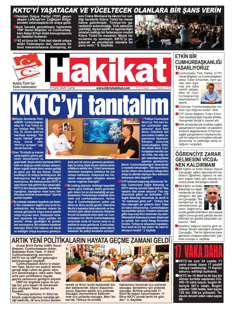 4 Eylül 2020 tarihinde KKTC’de yayınlanan gazete manşetleri