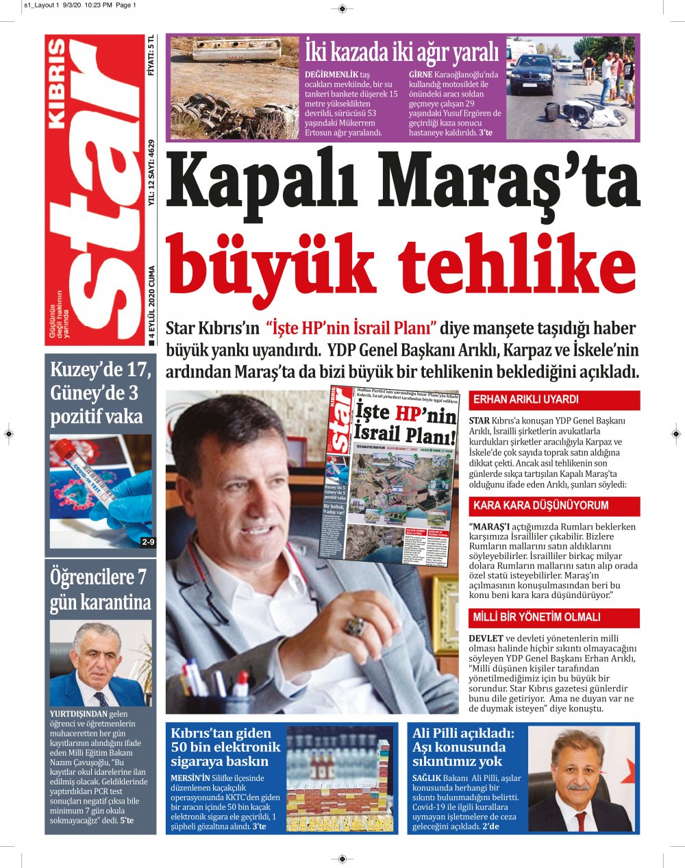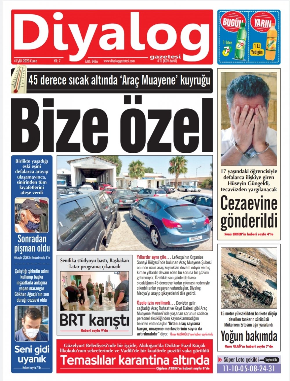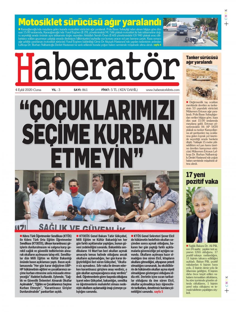 4 Eylül 2020 tarihinde KKTC’de yayınlanan gazete manşetleri