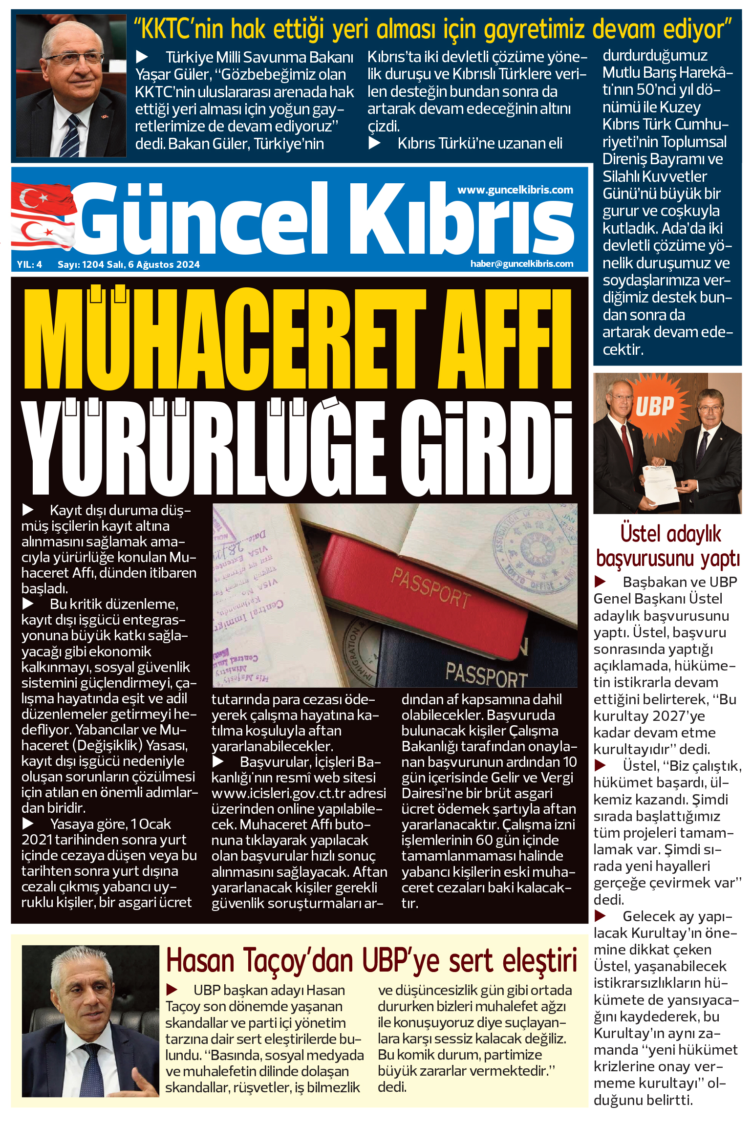 6 Ağustos 2024’te KKTC’de yayınlanan gazete manşetleri