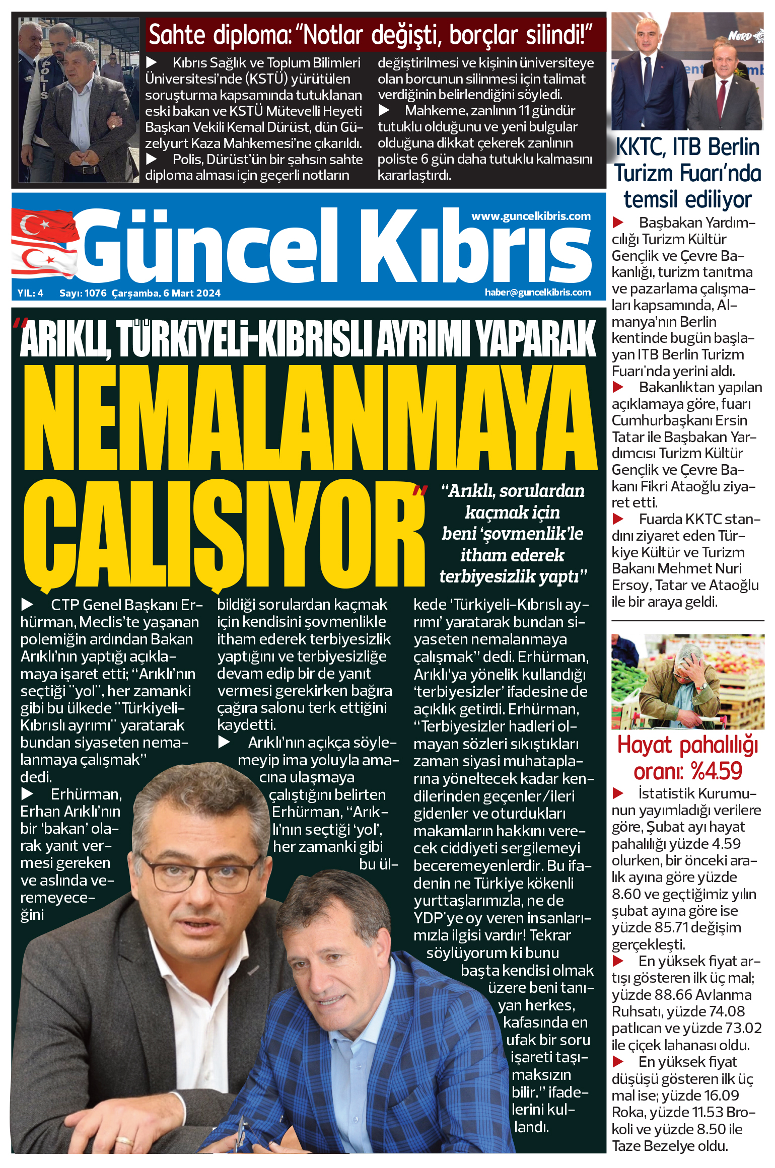 6 Mart 2024’te KKTC’de yayınlanan gazete manşetleri