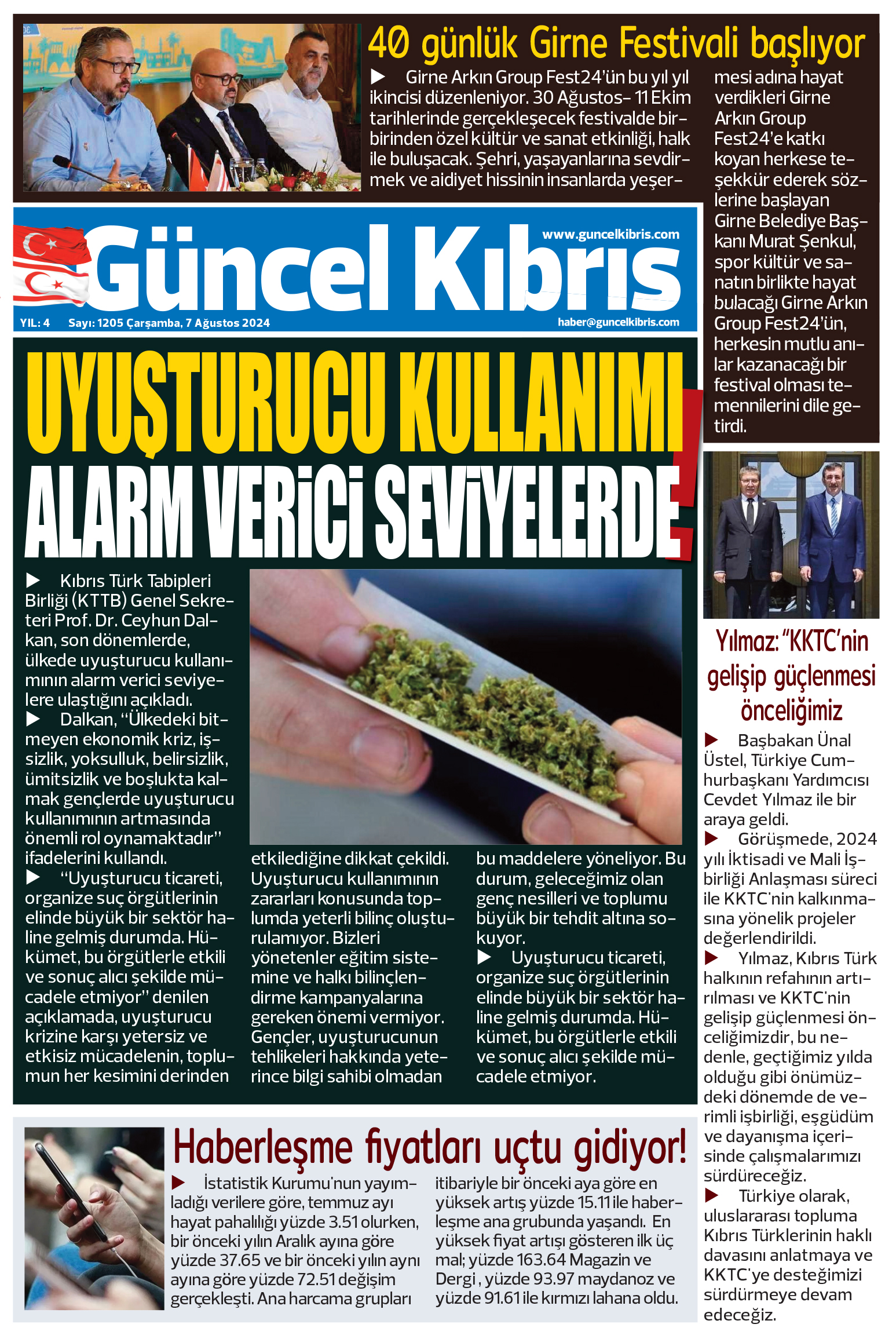 7 Ağustos 2024’te KKTC’de yayınlanan gazete manşetleri
