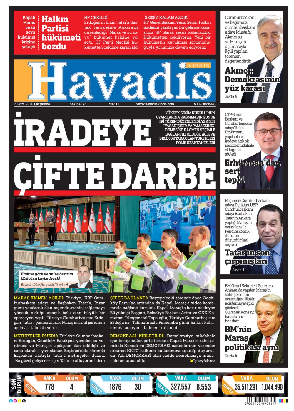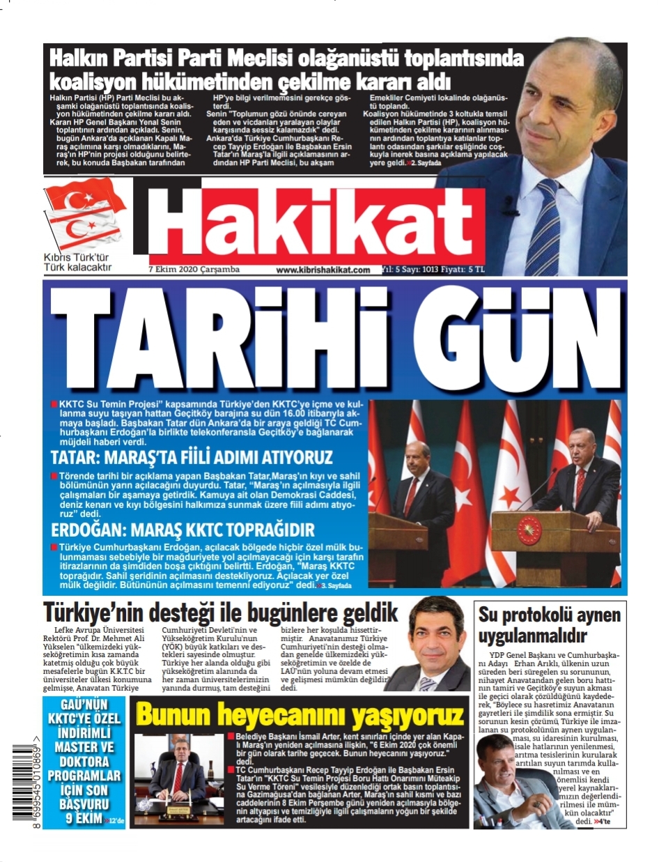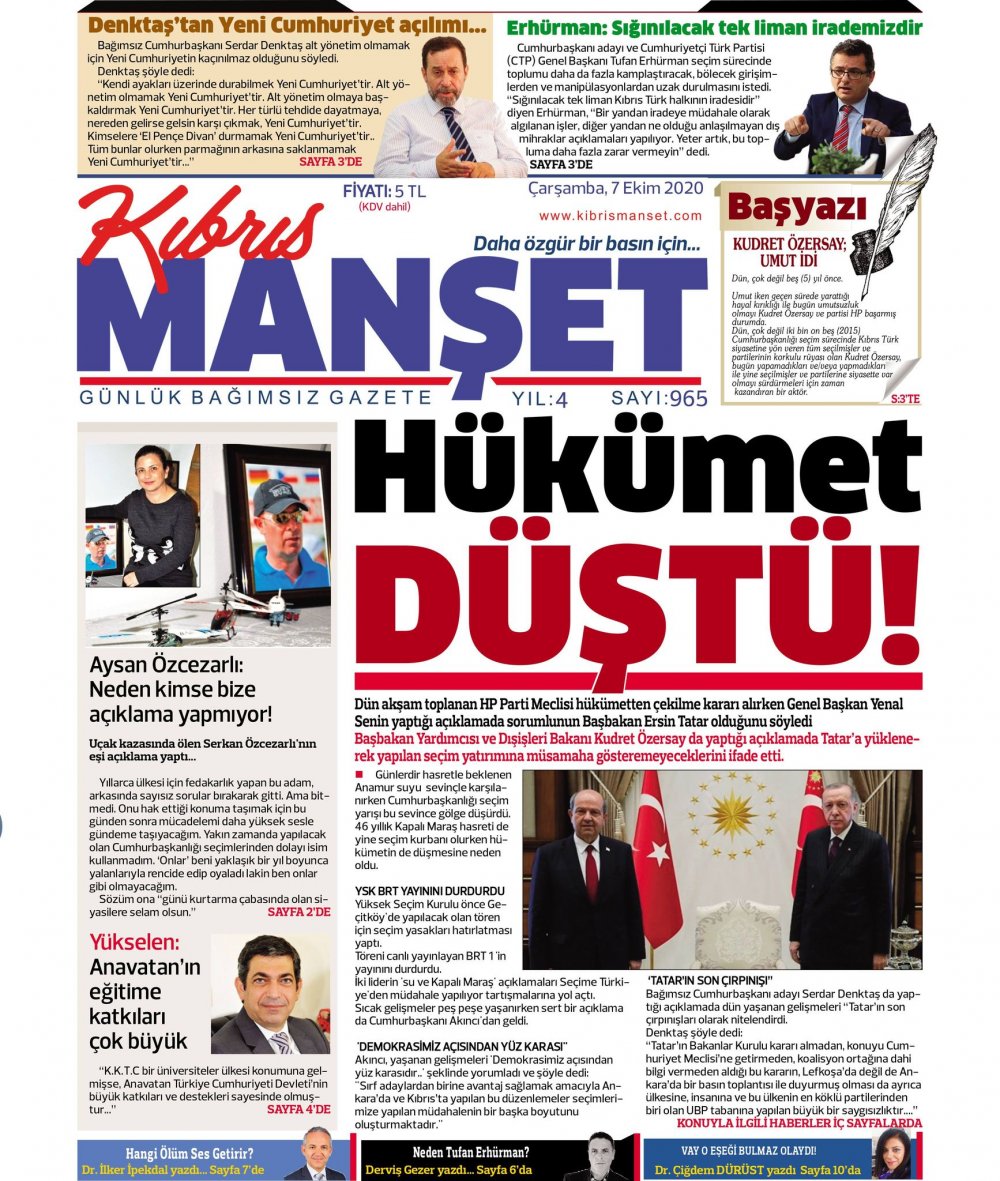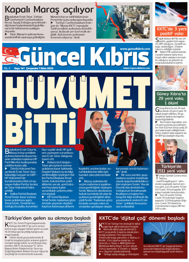 7 Ekim 2020 tarihinde KKTC’de yayınlanan gazete manşetleri