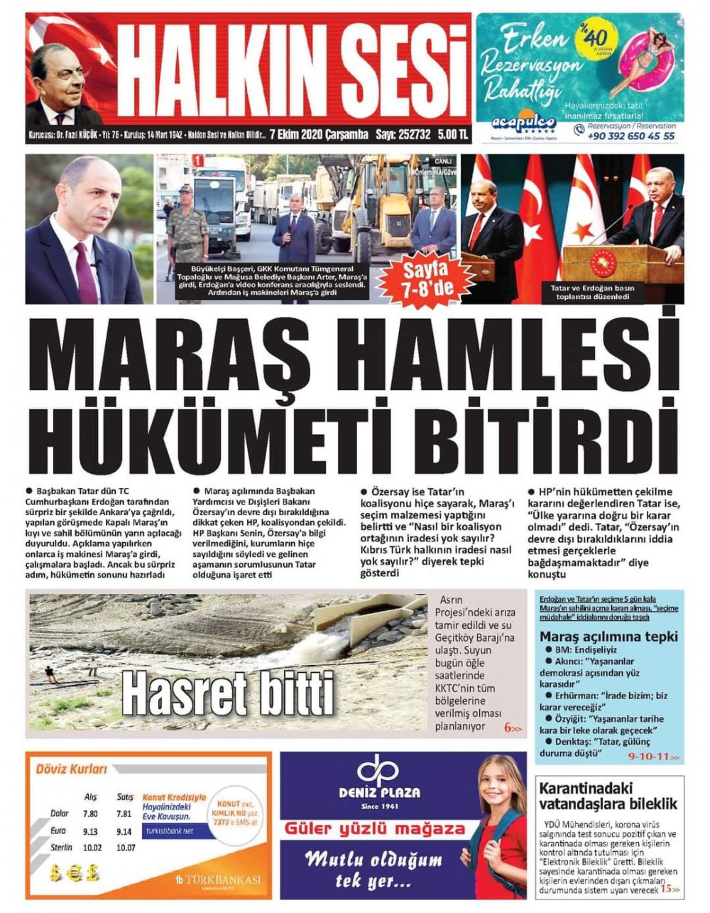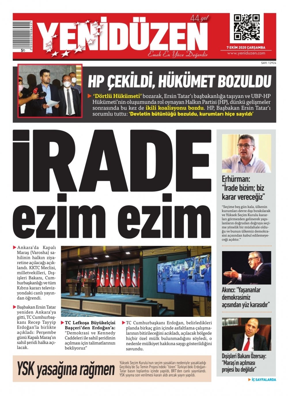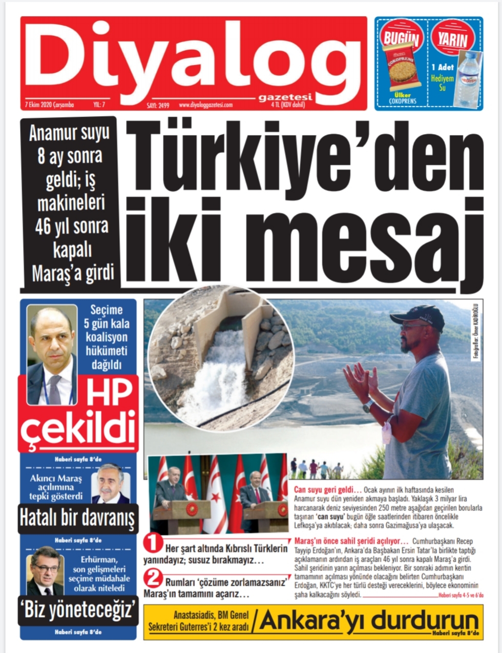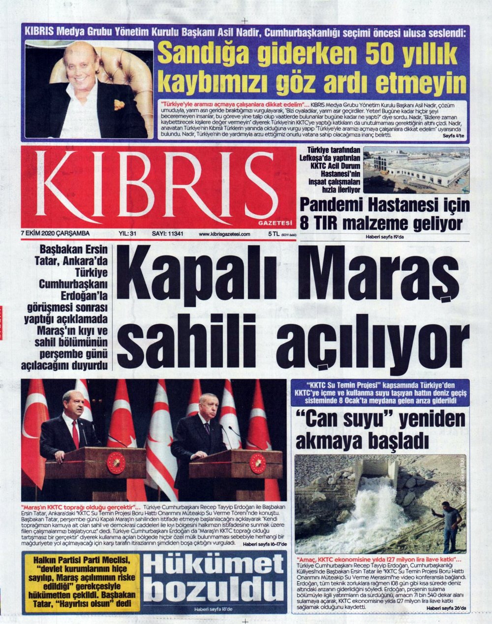 7 Ekim 2020 tarihinde KKTC’de yayınlanan gazete manşetleri