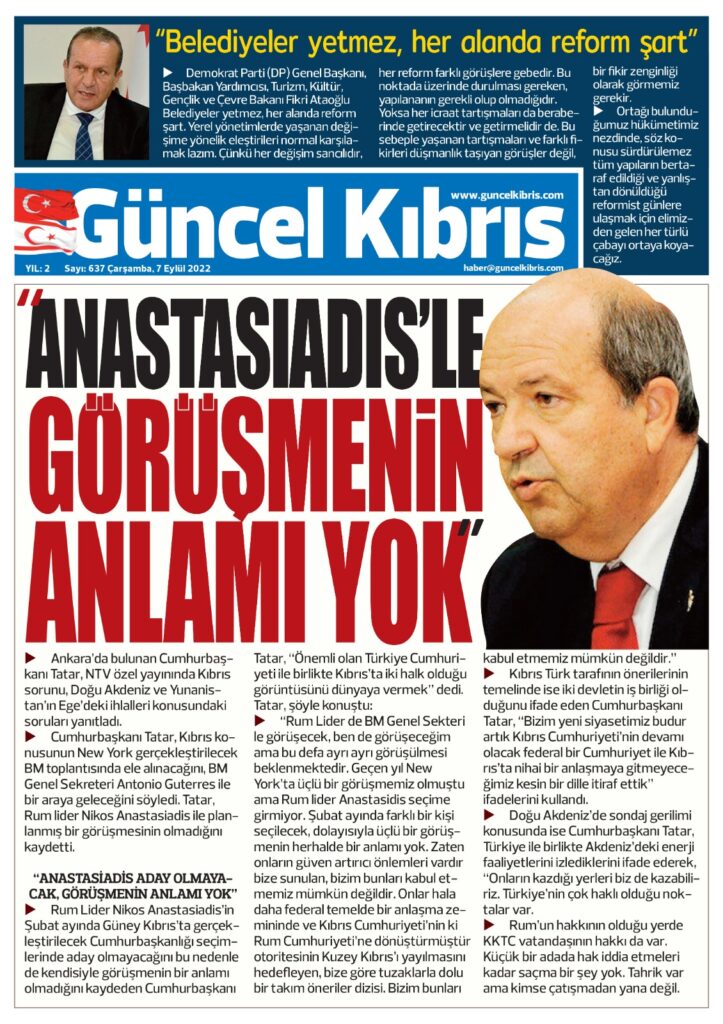 7 Eylül 2022’de KKTC’de yayınlanan gazete manşetleri