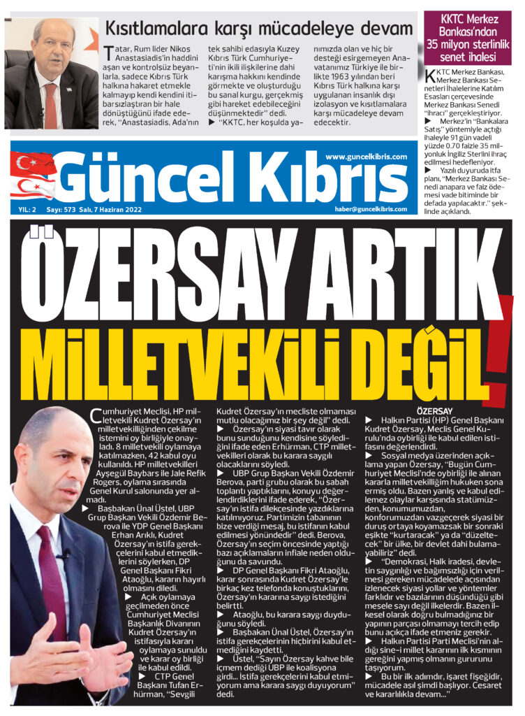 7 Haziran 2022’de KKTC’de yayınlanan gazete manşetleri