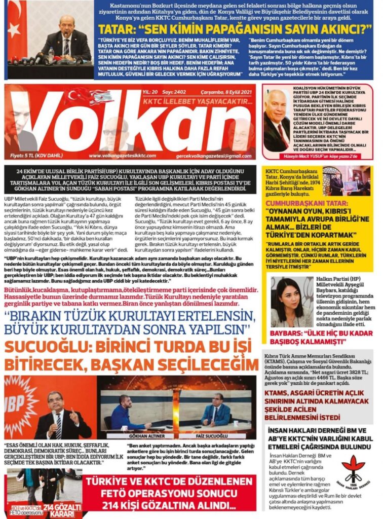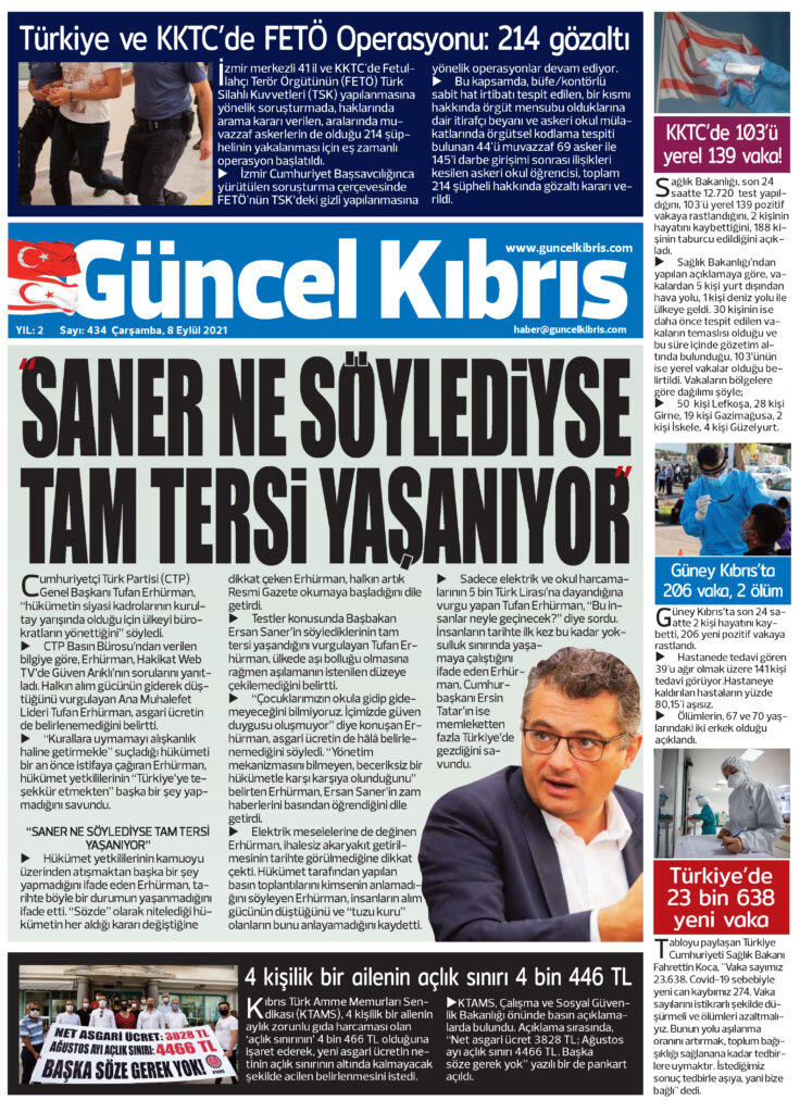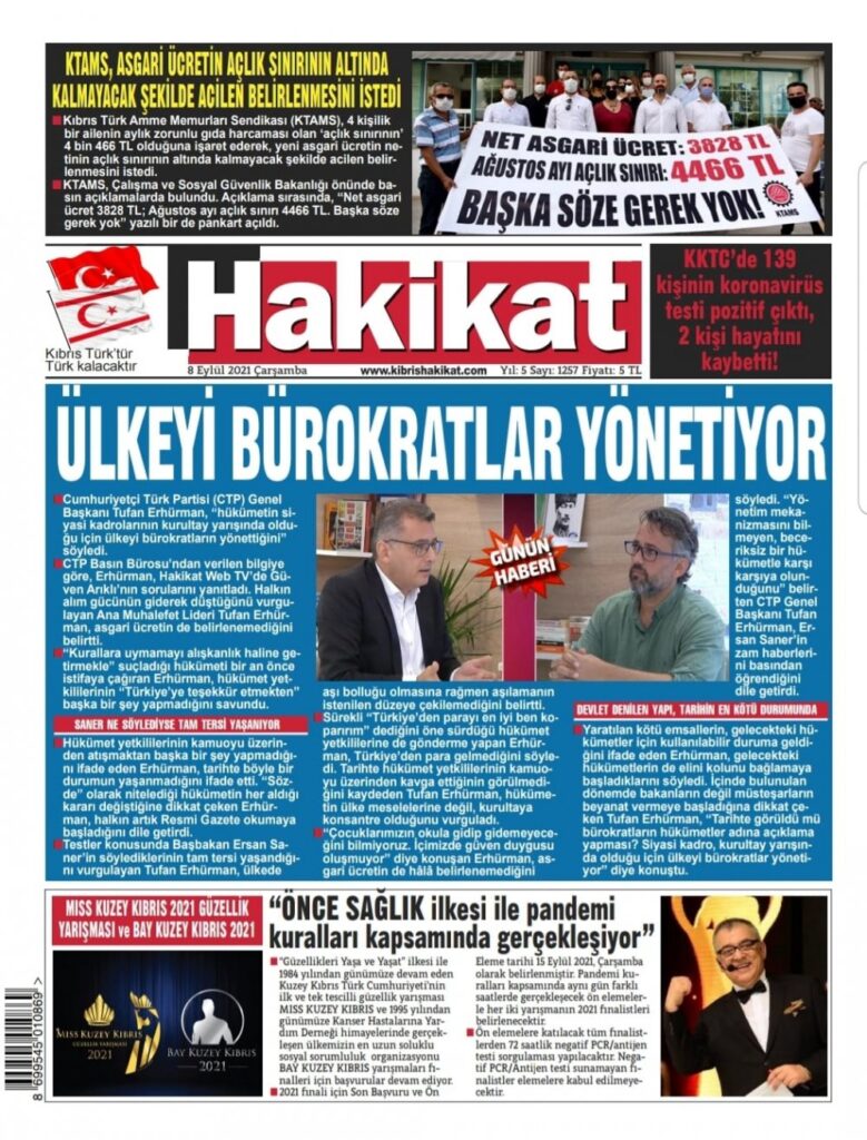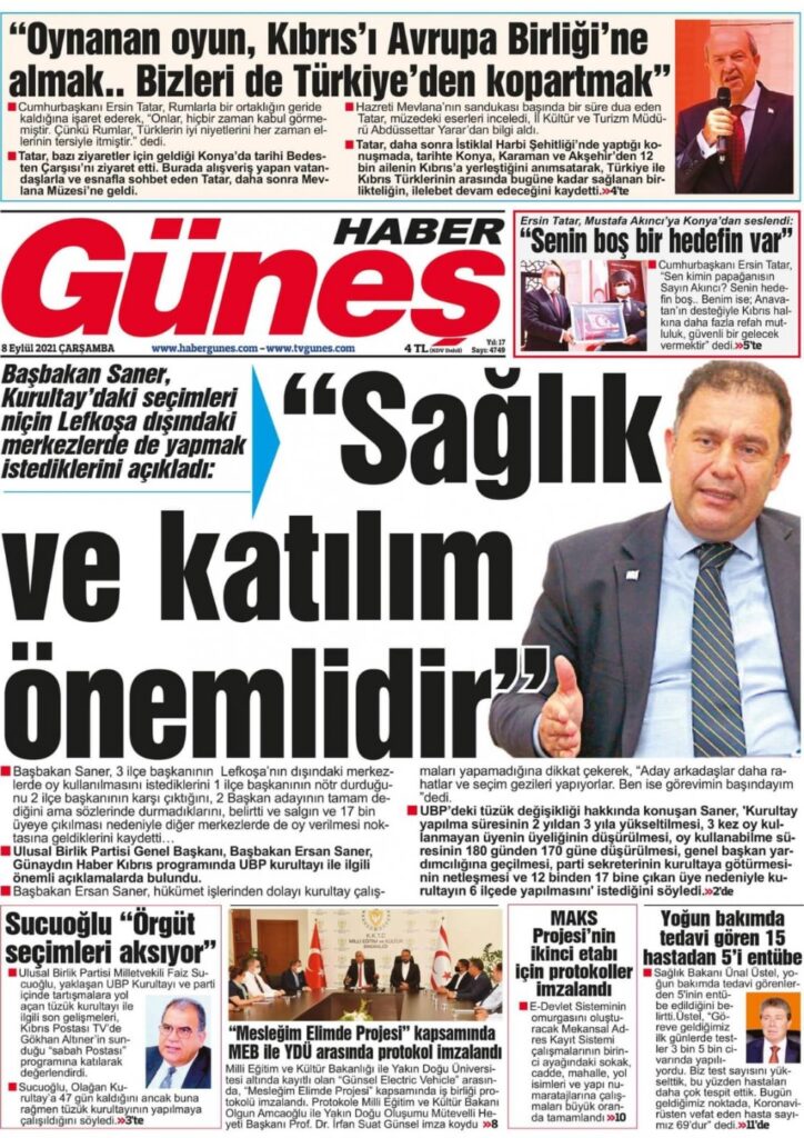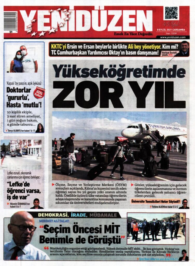 8 Eylül 2021’de KKTC’de yayınlanan gazete manşetleri