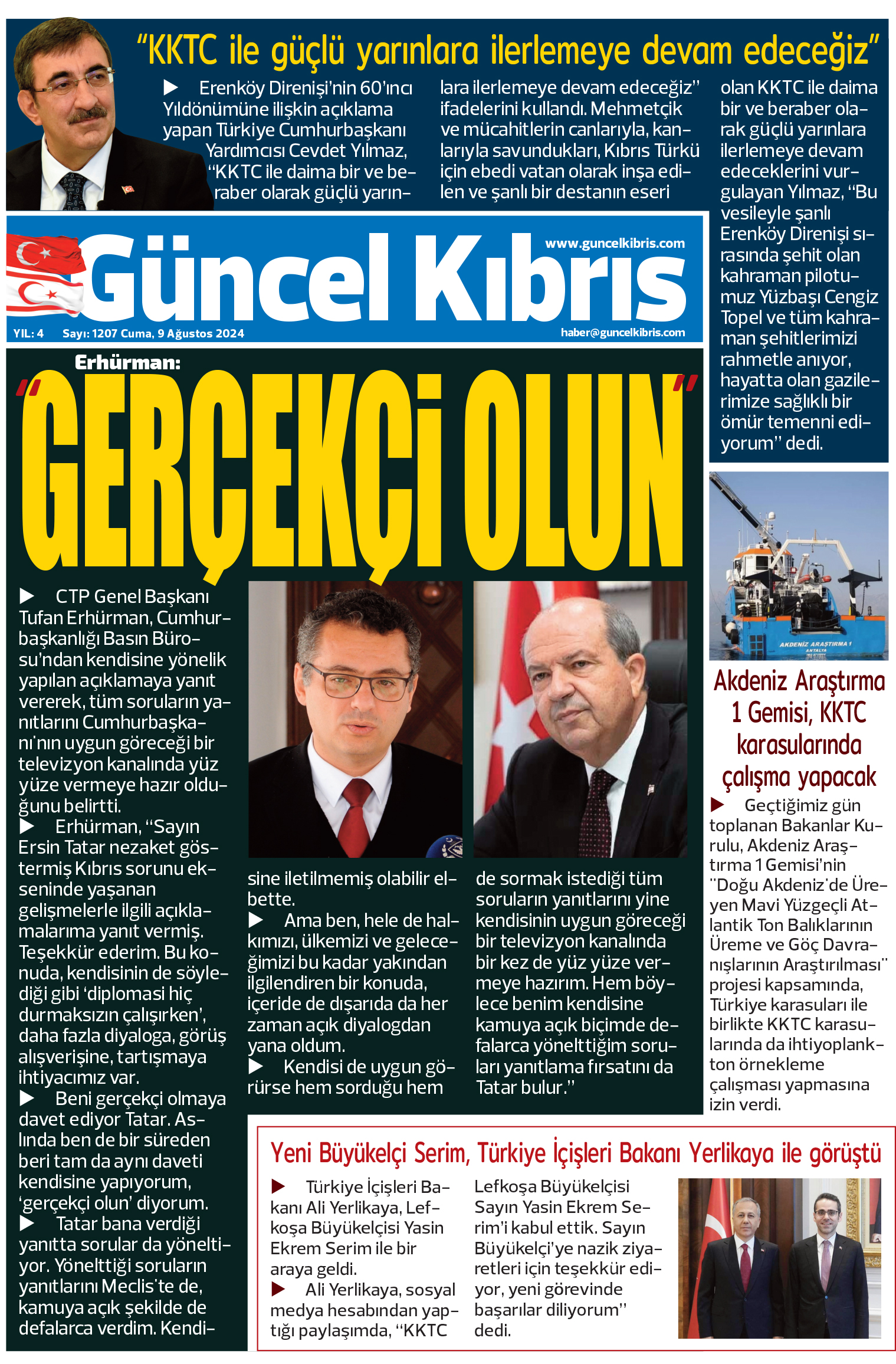 9 Ağustos 2024’te KKTC’de yayınlanan gazete manşetleri