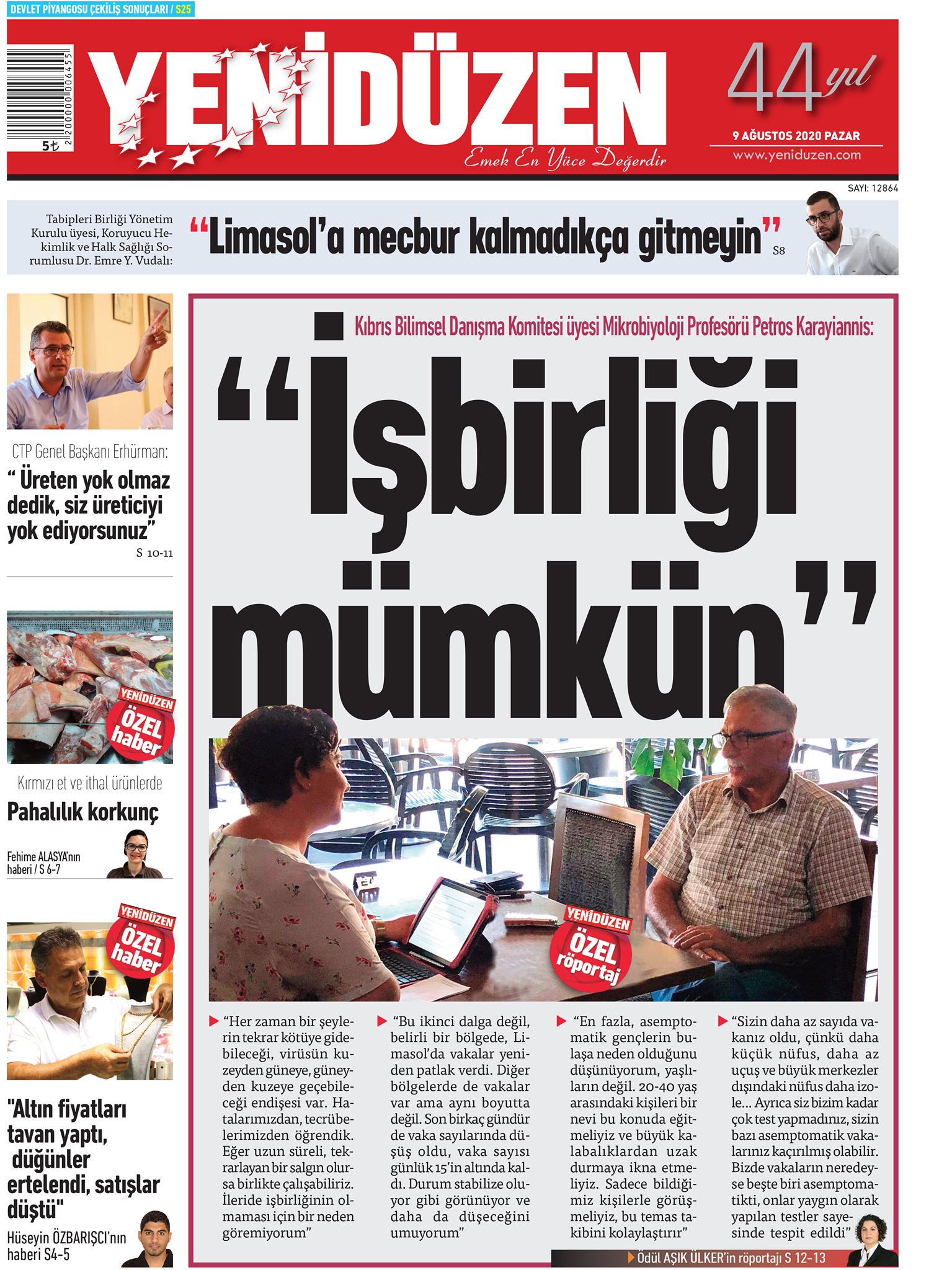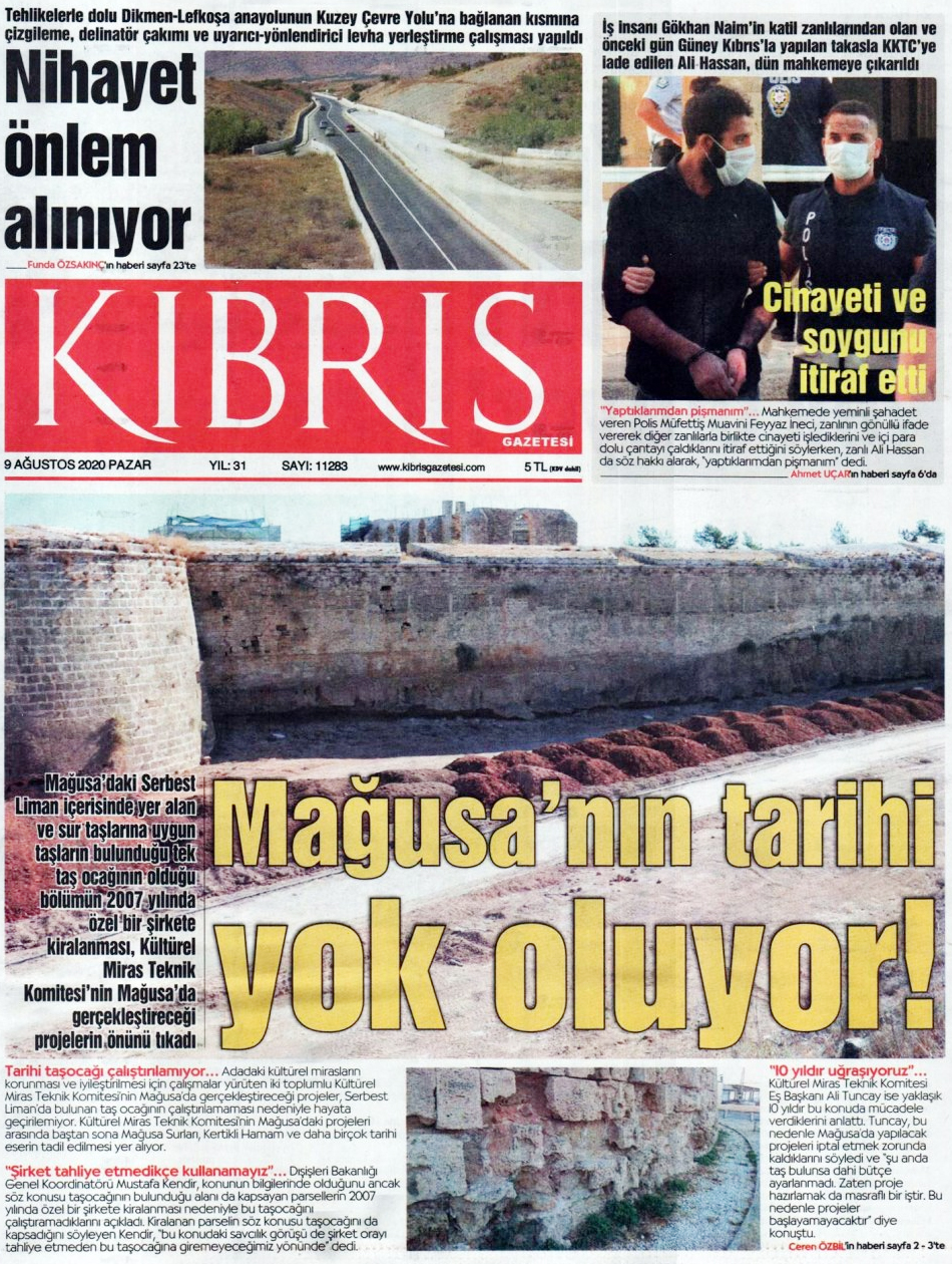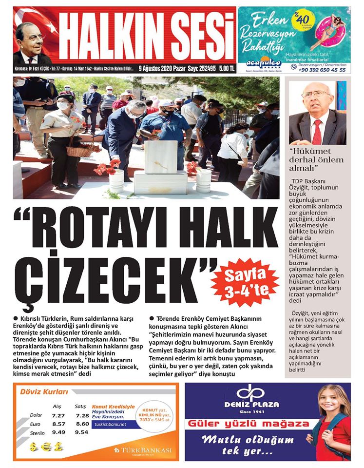 9 Ağustos 2020 tarihinde KKTC yayınlanan gazete manşetleri