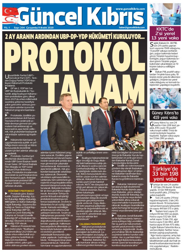 9 Aralık 2020 tarihinde KKTC’de yayınlanan gazete manşetleri