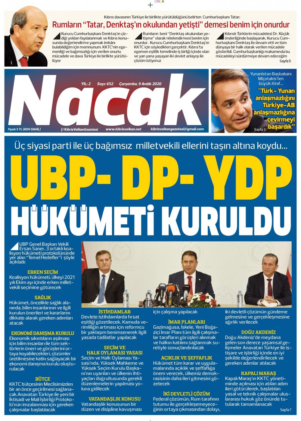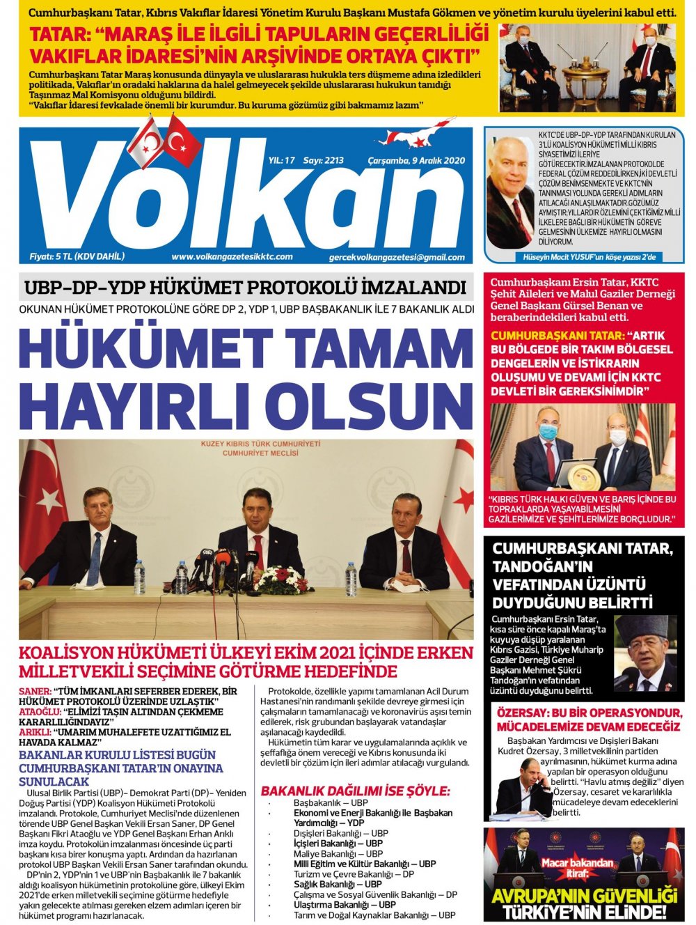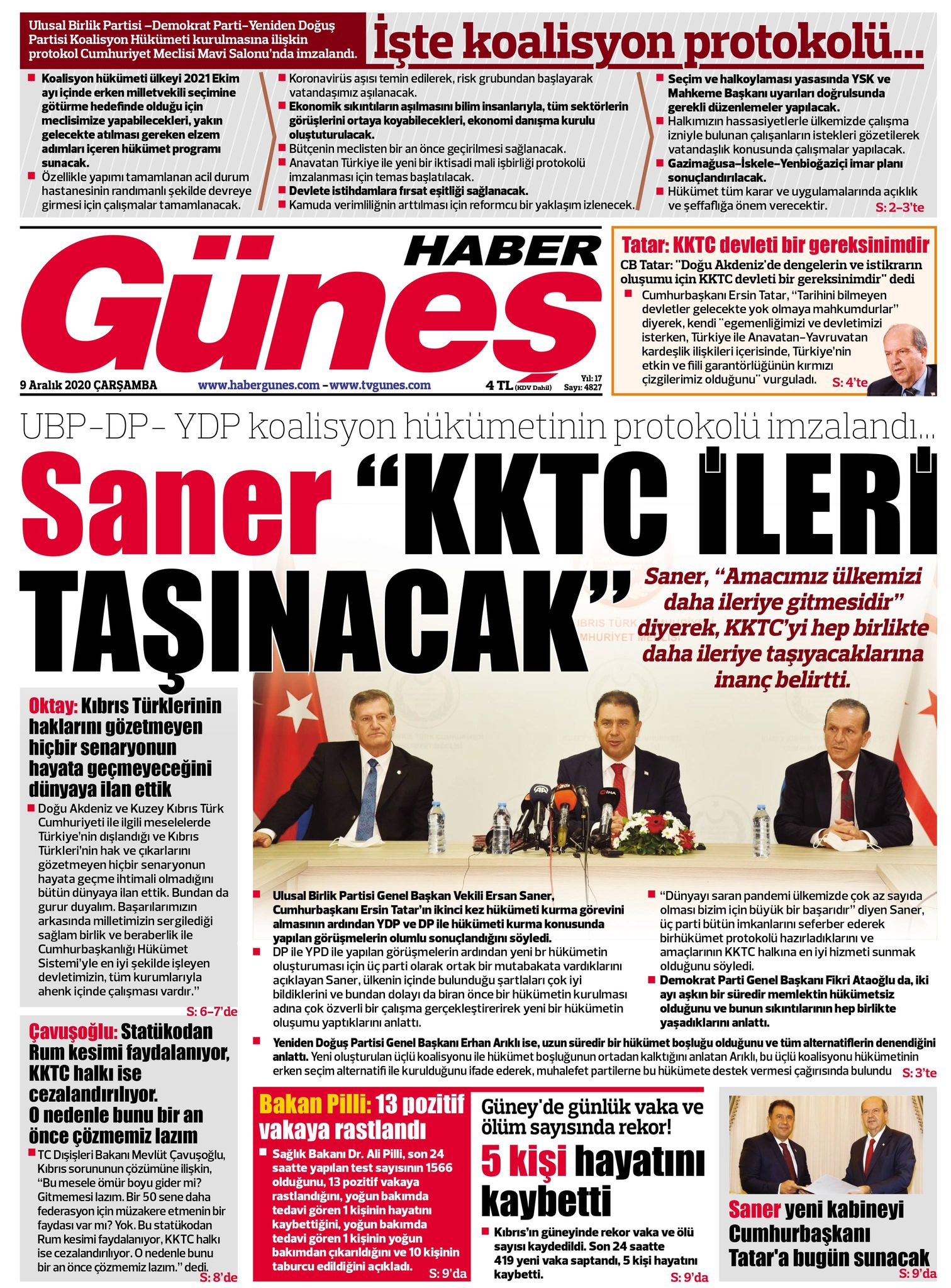 9 Aralık 2020 tarihinde KKTC’de yayınlanan gazete manşetleri