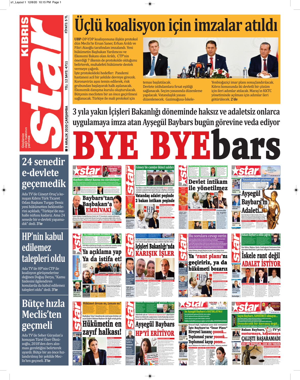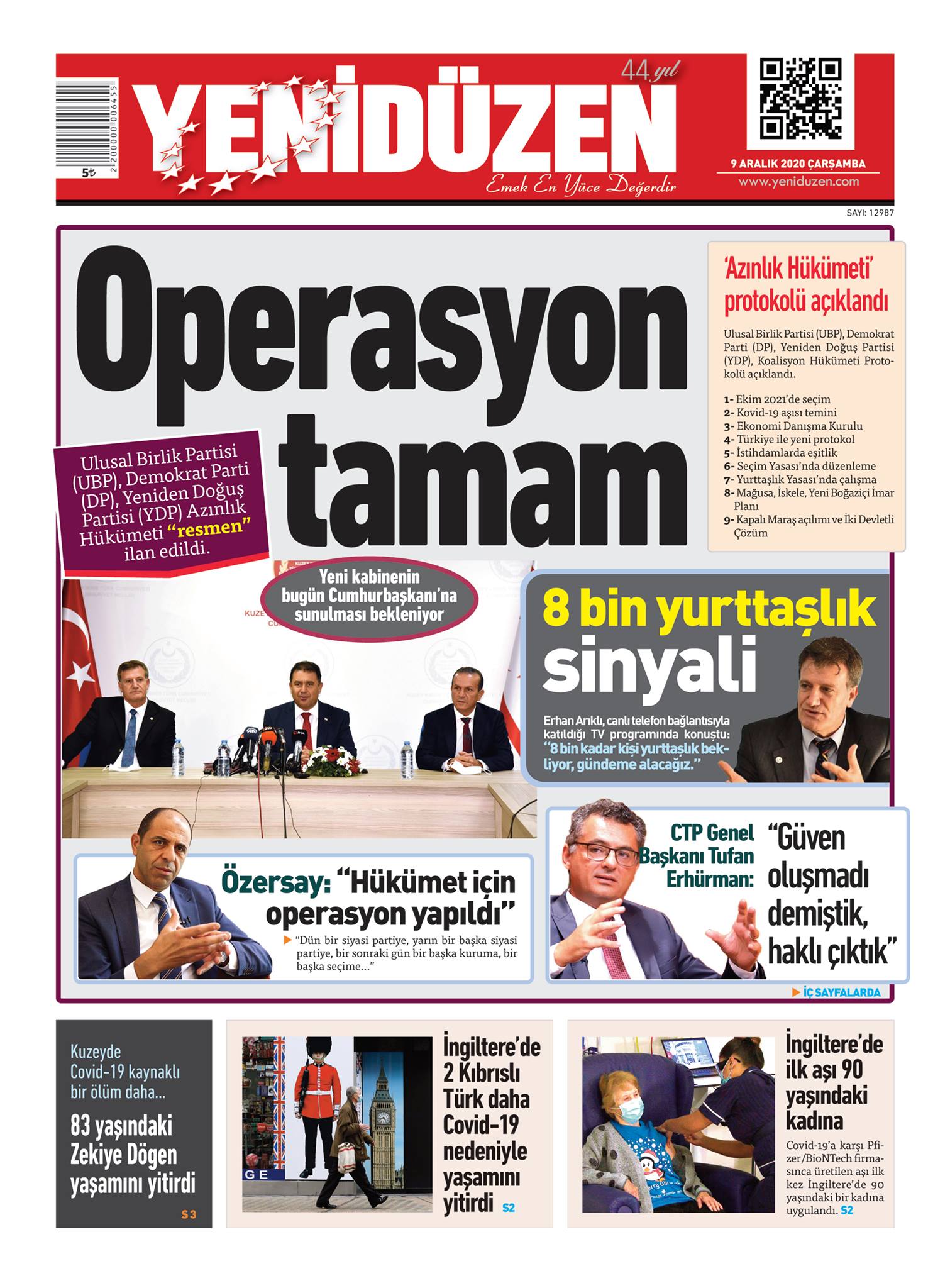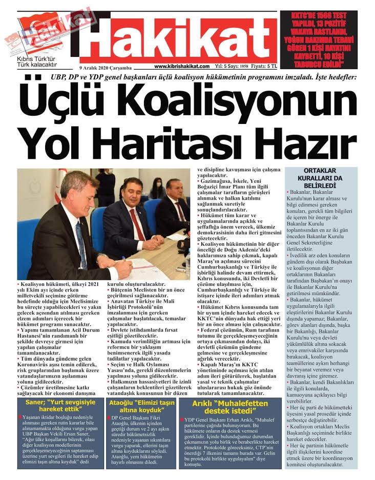9 Aralık 2020 tarihinde KKTC’de yayınlanan gazete manşetleri