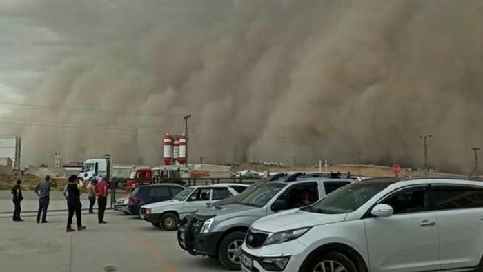 Ankara’nın Polatlı ilçesinde yaşanan kum fırtınası kameralara yansıdı. Cep telefonlarıyla kum fırtınasını kaydeden vatandaşların “İlk defa böyle bir şey görüyorum.” ve “Korkunç… Göz gözü görmüyor.” dediği duyuldu..