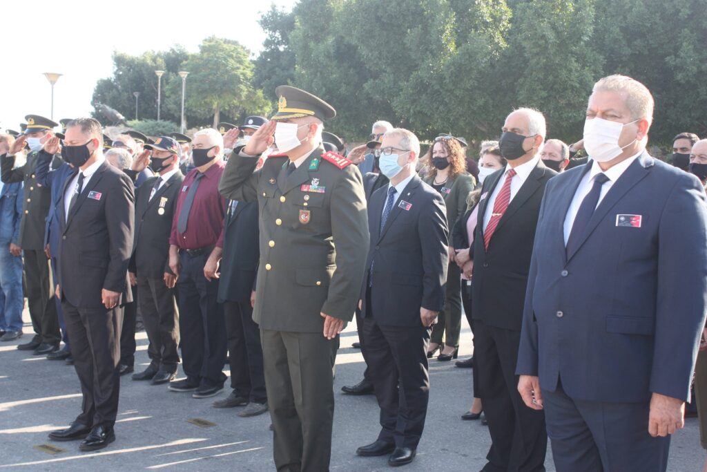 Protokol sırasına göre Gazimağusa Kaymakamı Kemal Serpal, Kıbrıs Türk Barış Kuvvetleri Komutanlığı adına Merkezi Komutanı Topçu Albay Oğuzhan Kırılmaz, Güvenlik Kuvvetleri Komutanlığı adına 4. Piyade Alay Komutanı Piyade Albay Kadir Bayraklı, siyasi parti, üniversite, dernek, kurum ve kuruluş temsilcileri tarafından anıta çelenk konuldu.