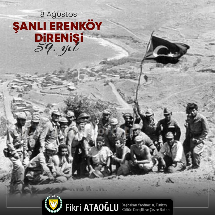Başbakan Yardımcısı, Turizm, Kültür, Gençlik ve Çevre Bakanı, Demokrat Parti (DP) Genel Başkanı Fikri Ataoğlu, ‘8 Ağustos Erenköy Direnişi’ nedeniyle mesaj yayımladı.