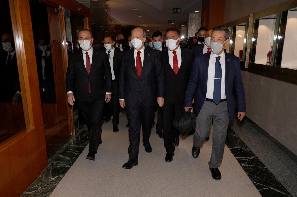 Daha sonra Cumhurbaşkanı Tatar, Başbakan Saner, Dışişleri Bakanı Ertuğruloğlu, Türkiye Dışişleri Bakanı Çavuşoğlu ile birlikte otelin toplantı odasına geçtiler.