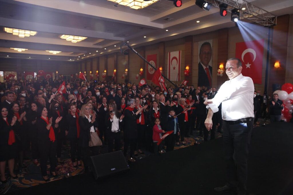 Konuşmanın ardıdnan, Demokrat Parti Milletvekili adayları “Kuzey Kıbrıs Türk Cumhuriyeti için değer” sloganıyla sahneye çıktı ve halka tanıtıldı.