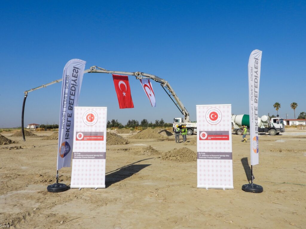 İskele Belediyesi’nin öz kaynakları ile TC Ekonomik Kalkınma ve İşbirliği Ofisi’nin katkılarıyla yaklaşık 10 milyon liraya mal olacak İskele Belediyesi Kapalı Pazar Yeri ve Terminal Alanı’nın temeli bugün atıldı.