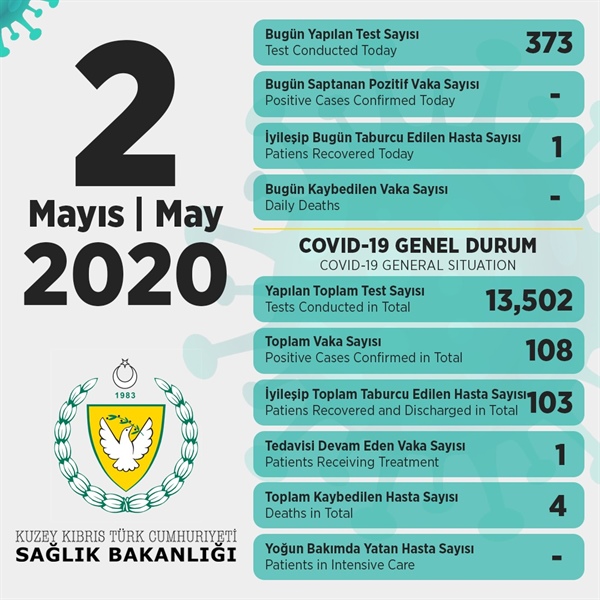 Böylece, toplam test sayısı 13 bin 502’ye yükselirken son on beş gündür KKTC’de pozitif vakaya rastlanmamış oldu. Tedavisi devam eden sadece bir hasta kaldı.