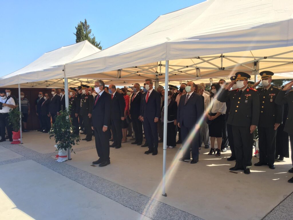Muratağa-Sandallar Şehitliği’nde saat 10.00’da Cumhurbaşkanı Mustafa Akıncı’nın şehitliğe çelenk sunmasıyla başlayan törende, saygı duruşu, saygı atışı yapıldı, İstiklal Marşı ile bayraklar göndere çekildi.