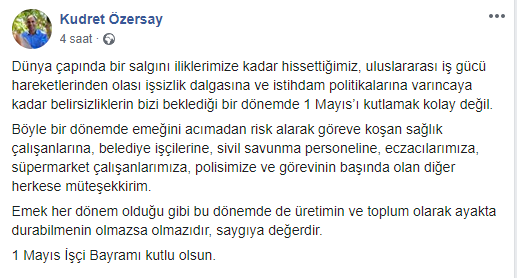 1 Mayıs İşçi Bayramı kutlu olsun.’