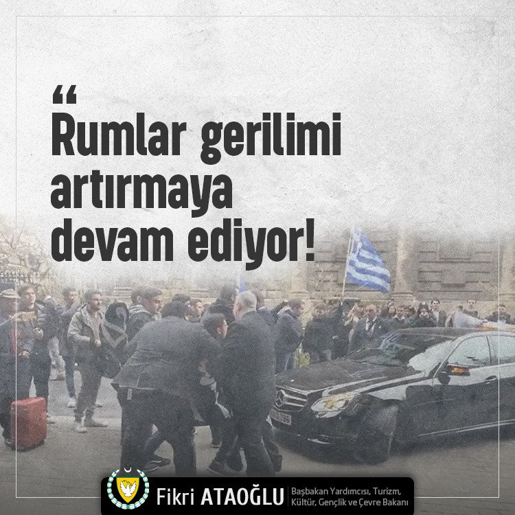 “Cumhurbaşkanı Sayın Ersin Tatar’ın Kıbrıs konusuyla ilgili olarak konferans vermek için gittiği Londra Kings College önünde Rum ve Yunanlı öğrenciler tarafından sözlü saldırıya uğraması tamamiyle saygısızlık ve hadsizliktir.
