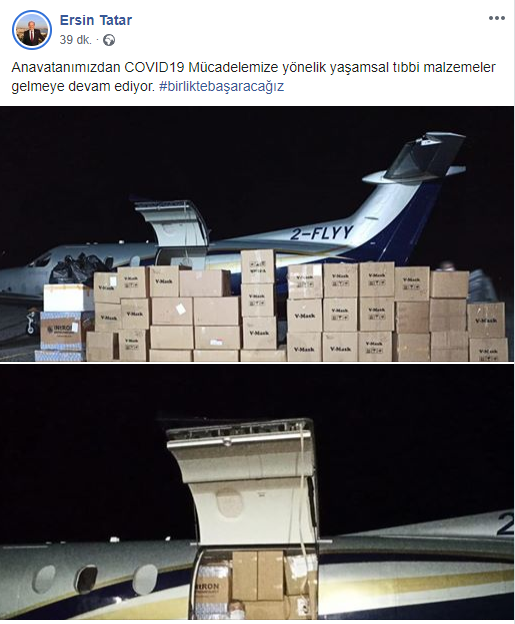 ”Anavatanımızdan COVID19 Mücadelemize yönelik yaşamsal tıbbi malzemeler gelmeye devam ediyor.”